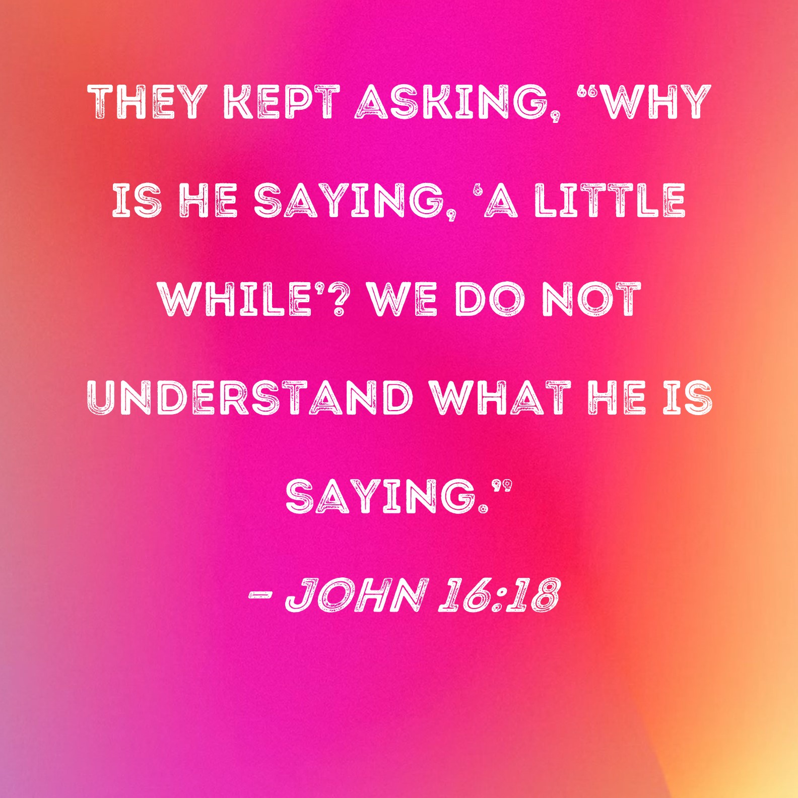 John 16:18 They kept asking, "Why is He saying, 'a little while'? We do not understand what He is saying."