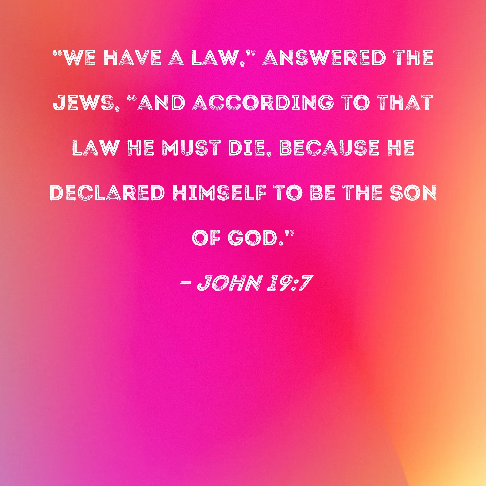 John 19:7 "We have a law," answered the Jews, "and according to that law He must die, because He declared Himself to be the Son of God."