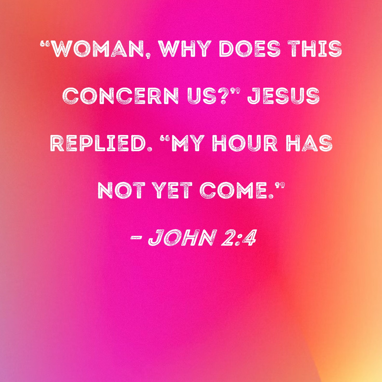 John 2:4 "Woman, why does this concern us?" Jesus replied. "My hour has not yet come."