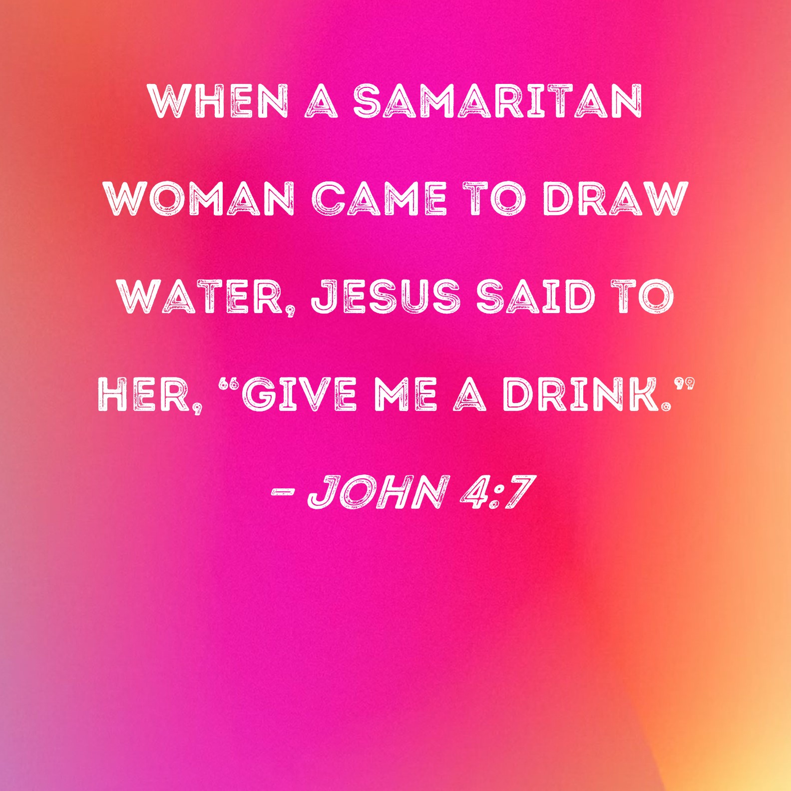 John 4:7 When a Samaritan woman came to draw water, Jesus said to her, "Give Me a drink."