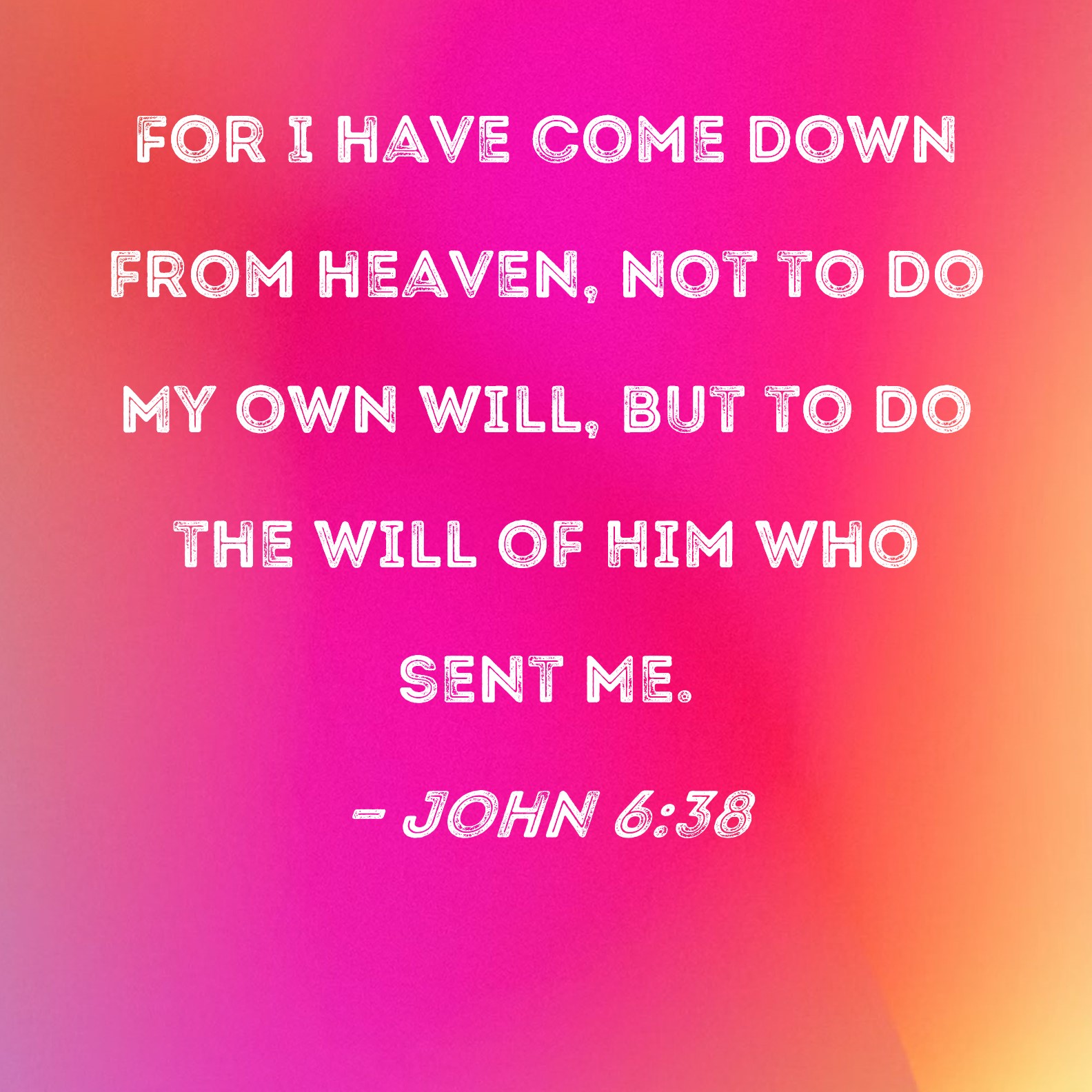 John 6:38 For I have come down from heaven, not to do My own will, but to do the will of Him who sent Me.