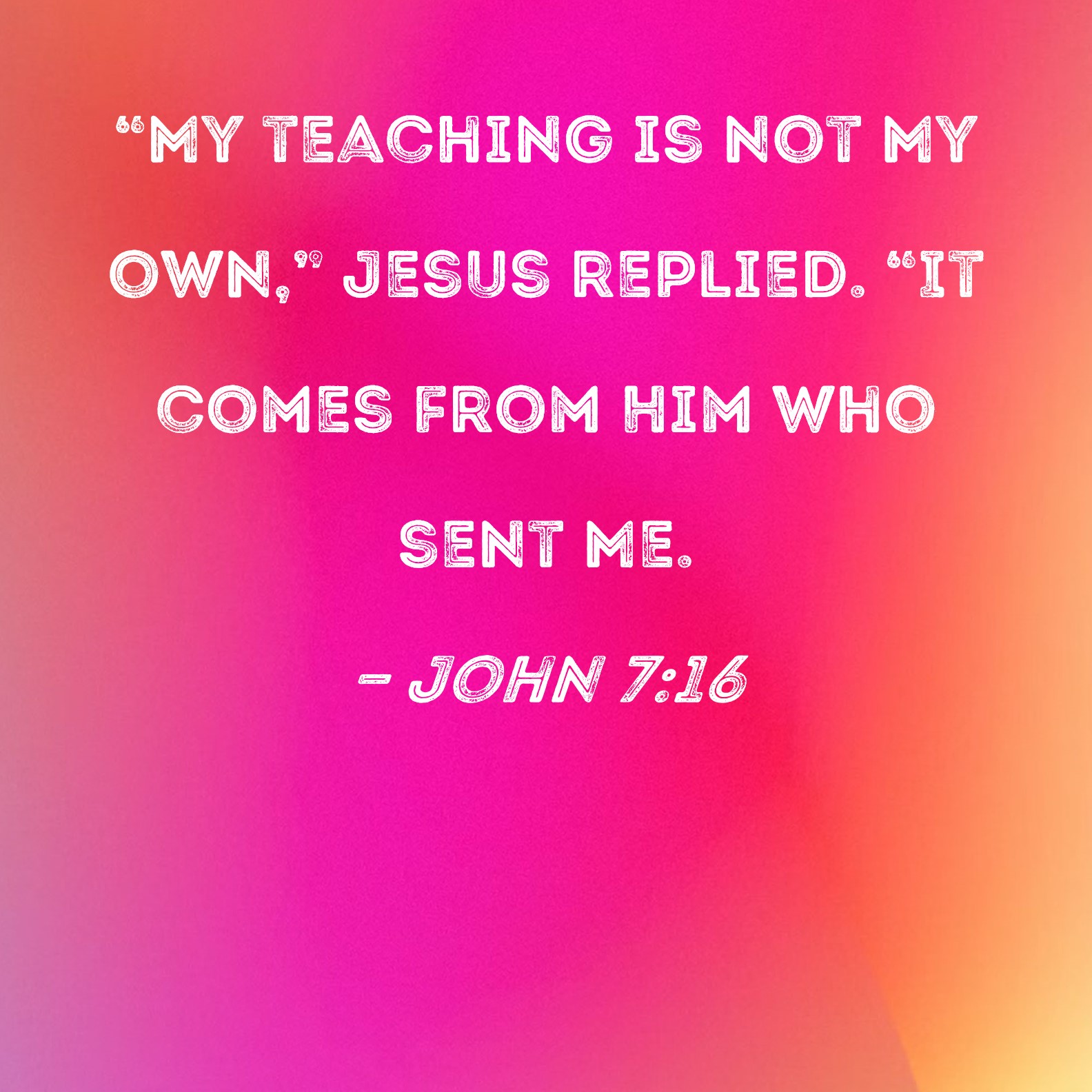 John 7:16 "My teaching is not My own," Jesus replied. "It comes from Him who sent Me.