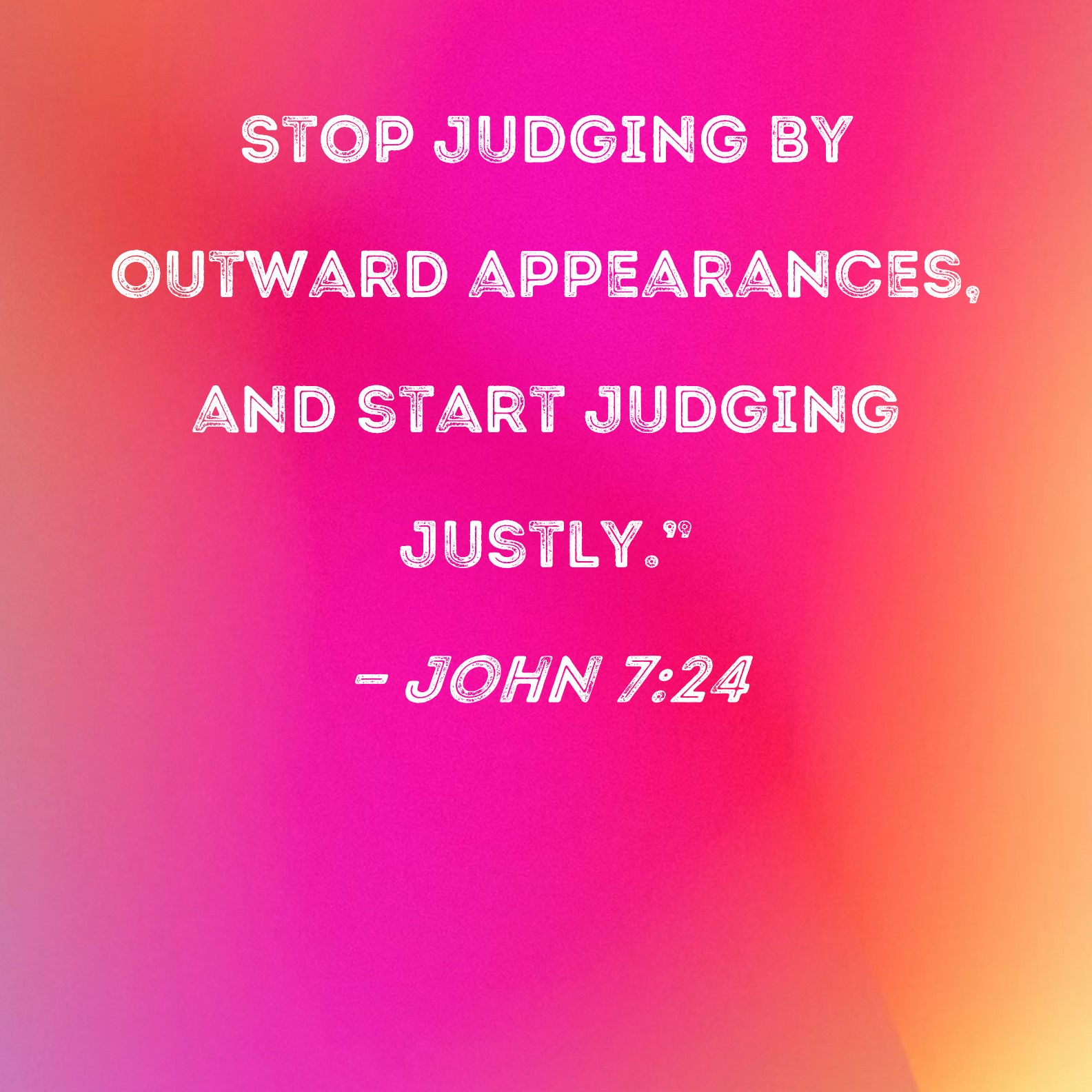 John 7:24 Stop judging by outward appearances, and start judging justly."