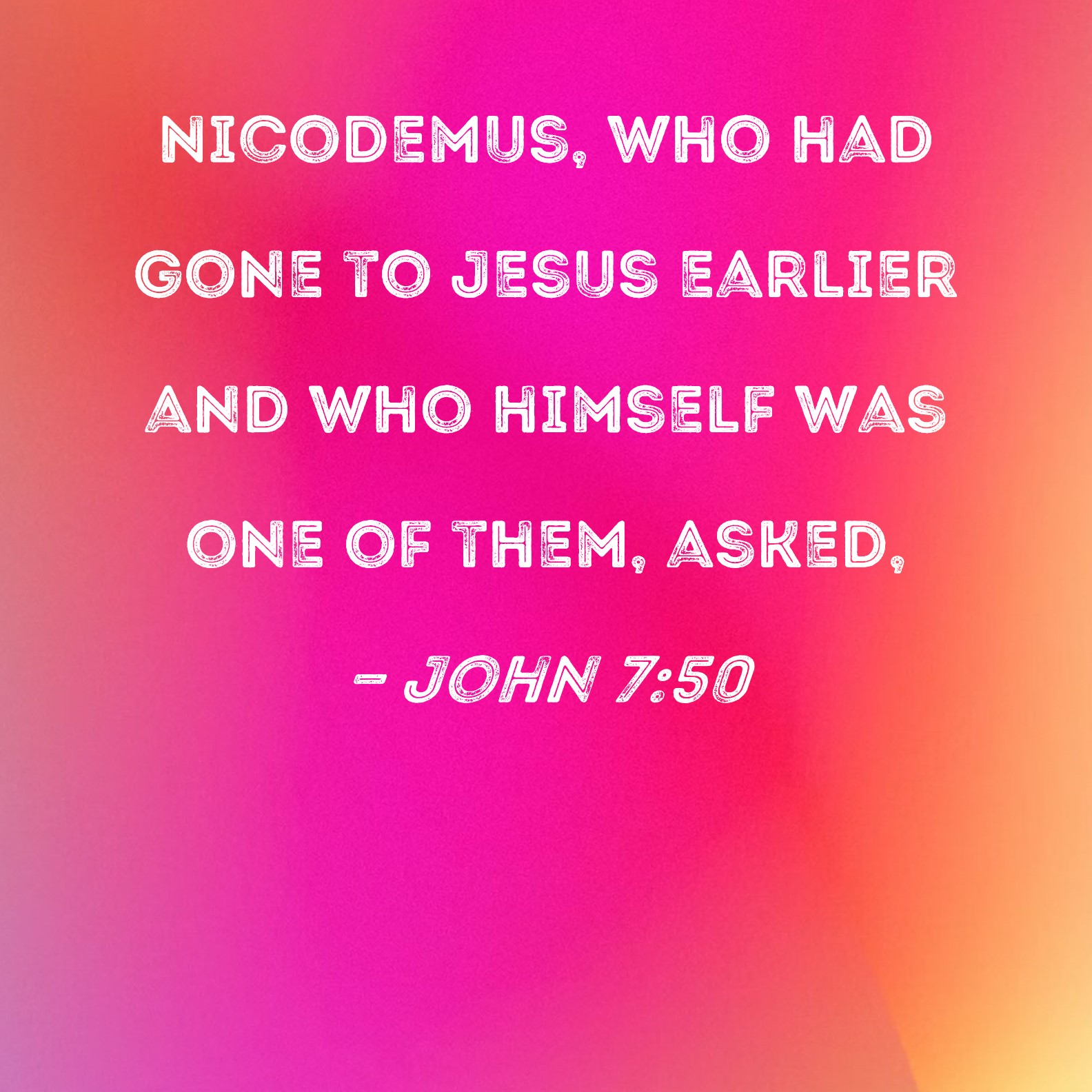 John 7:50 Nicodemus, who had gone to Jesus earlier and who himself was one of them, asked,