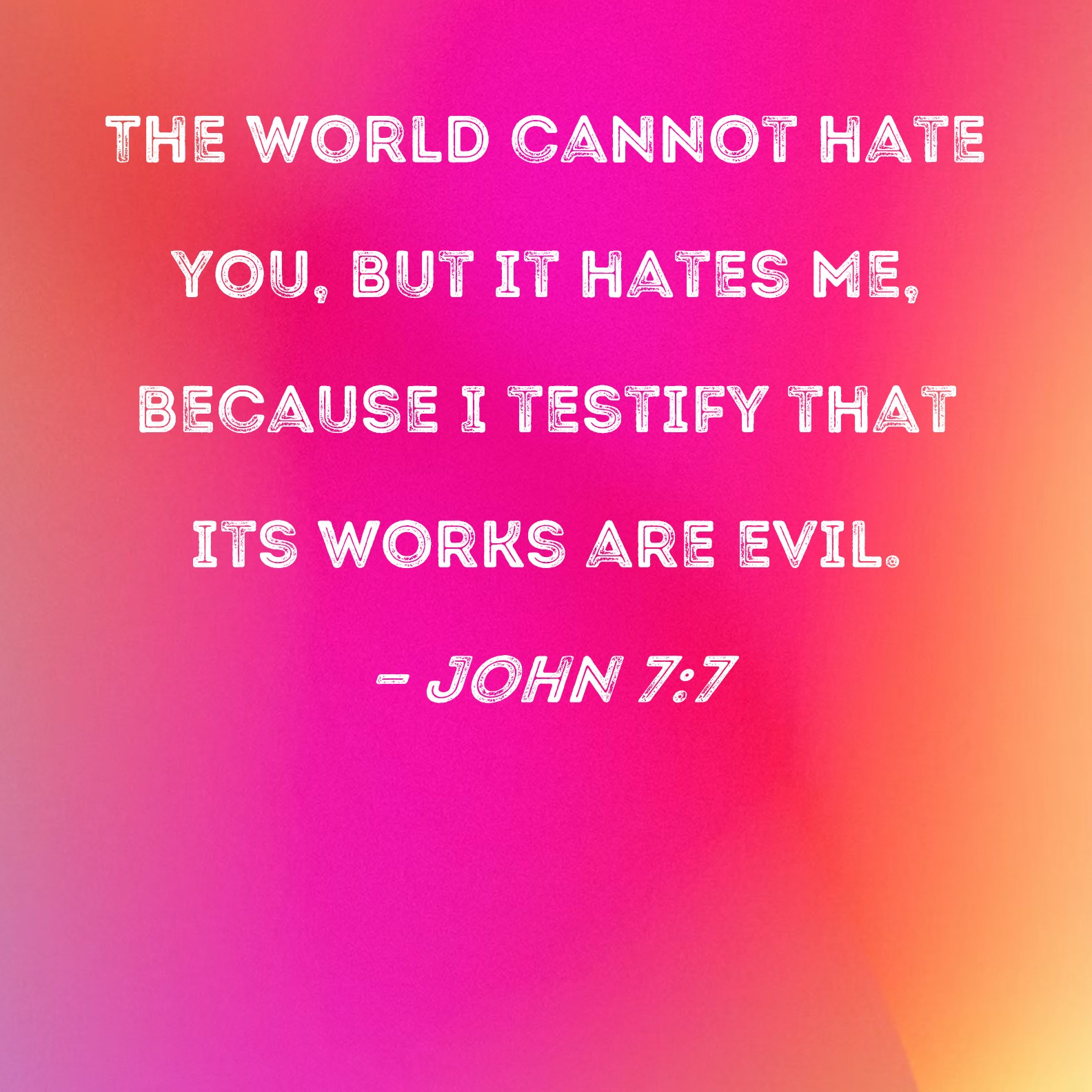 John 7:7 The world cannot hate you, but it hates Me, because I testify that its works are evil.