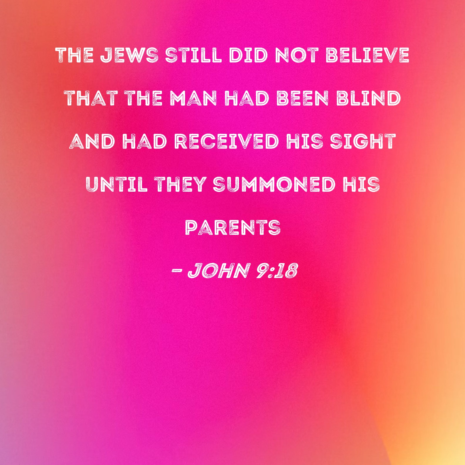 John 9:18 The Jews still did not believe that the man had been blind and had received his sight until they summoned his parents