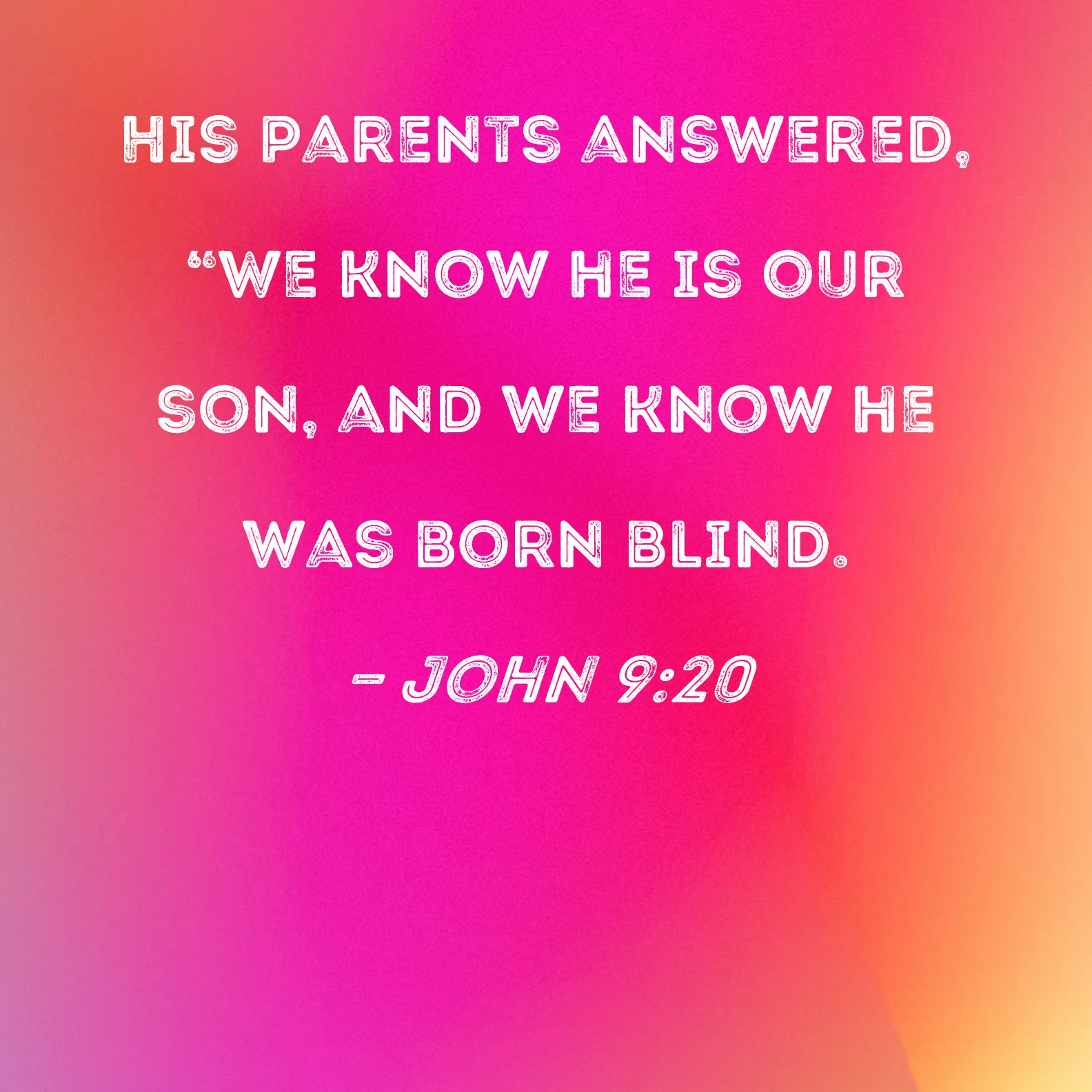 John 9:20 His parents answered, "We know he is our son, and we know he was born blind.