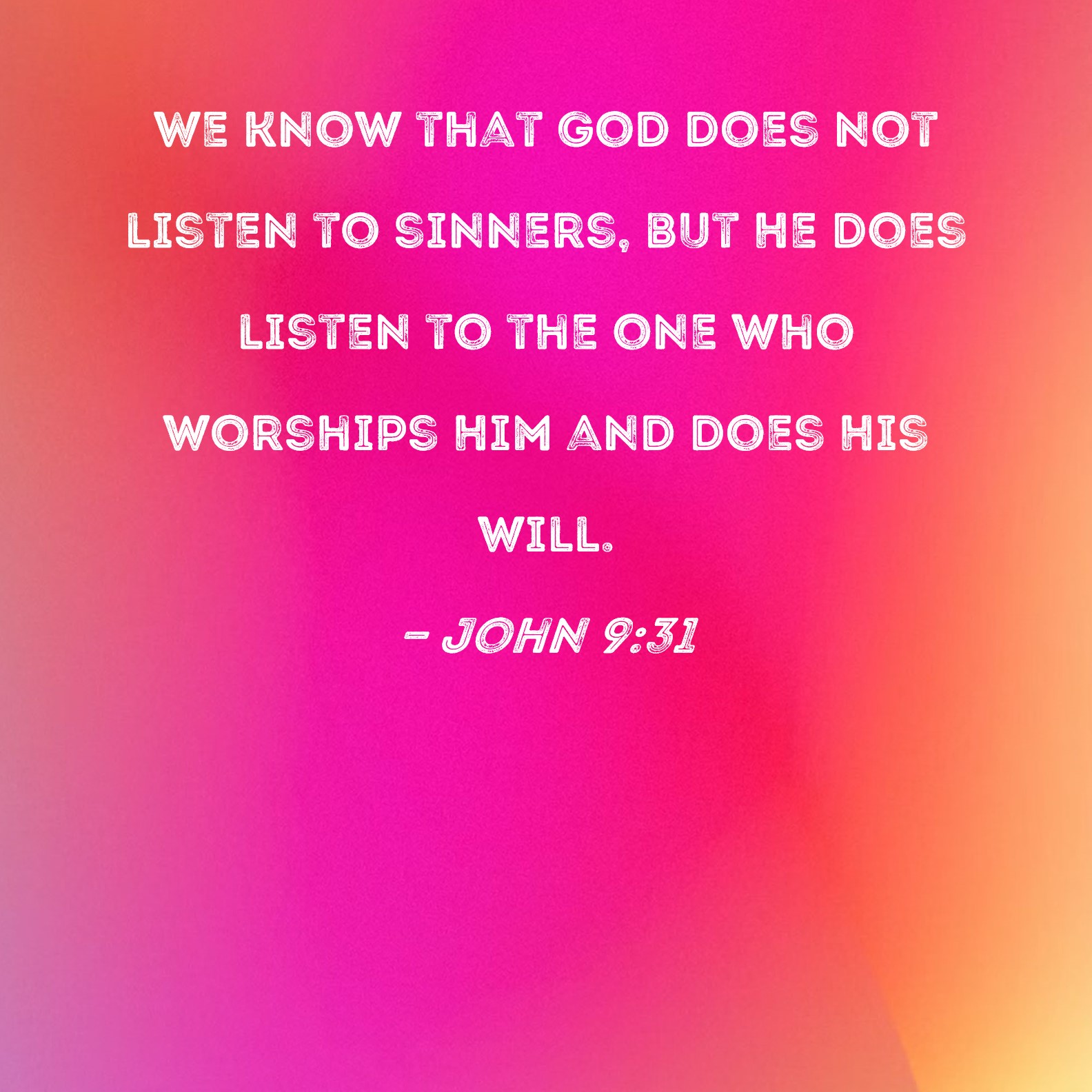 John 9:31 We know that God does not listen to sinners, but He does listen to the one who worships Him and does His will.