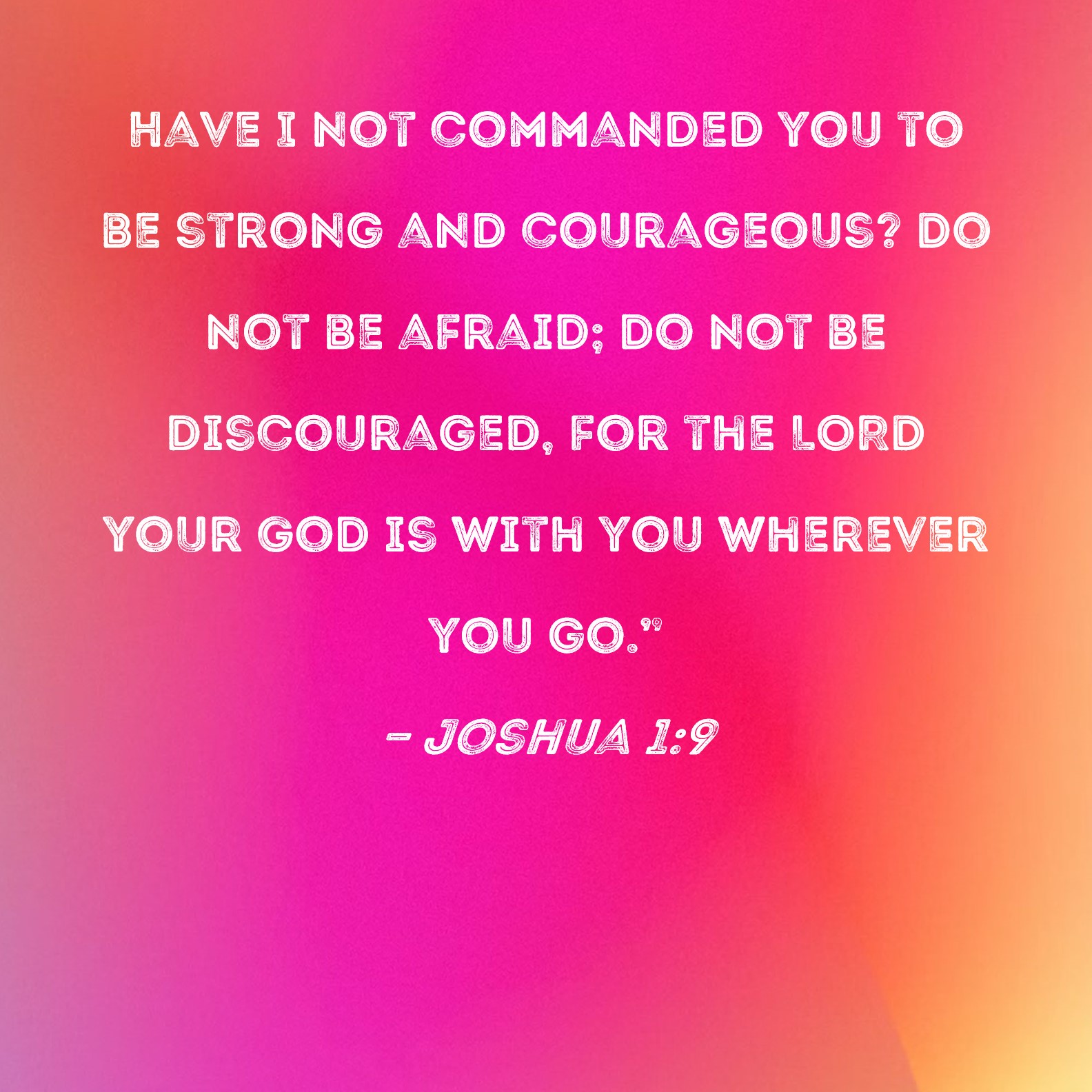 Joshua 1:9 Have I not commanded you to be strong and courageous? Do not be afraid; do not be discouraged, for the LORD your God is with you wherever you go."