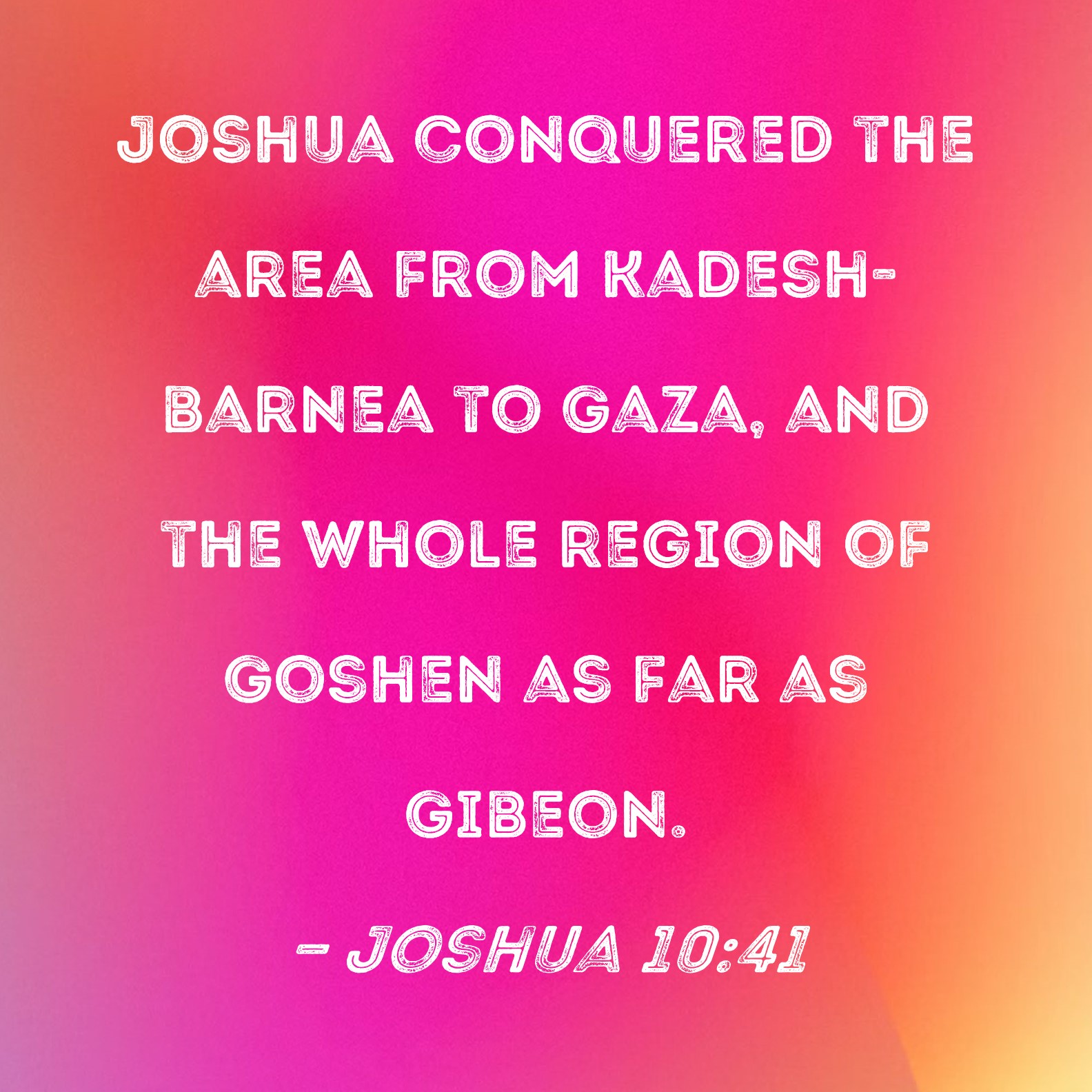 Joshua 10:41 Joshua conquered the area from Kadesh-barnea to Gaza, and the whole region of Goshen as far as Gibeon.