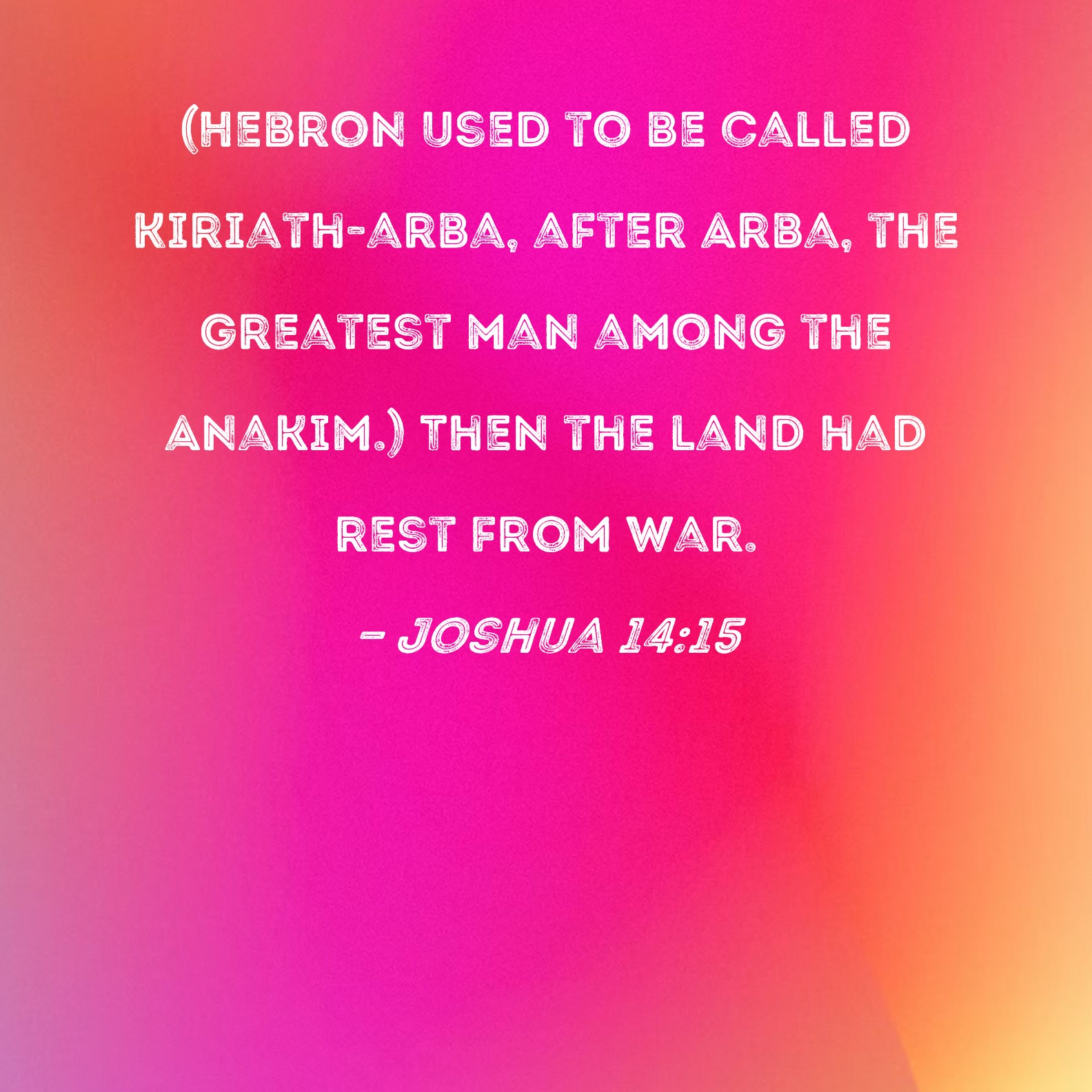 Joshua 14:15 (Hebron used to be called Kiriath-arba, after Arba, the greatest man among the Anakim.) Then the land had rest from war.