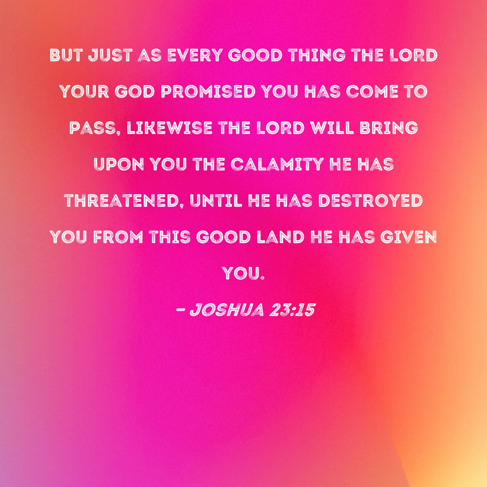 Joshua 23:15 But just as every good thing the LORD your God promised you has come to pass, likewise the LORD will bring upon you the calamity He has threatened, until He has destroyed you from this good land He has given you.