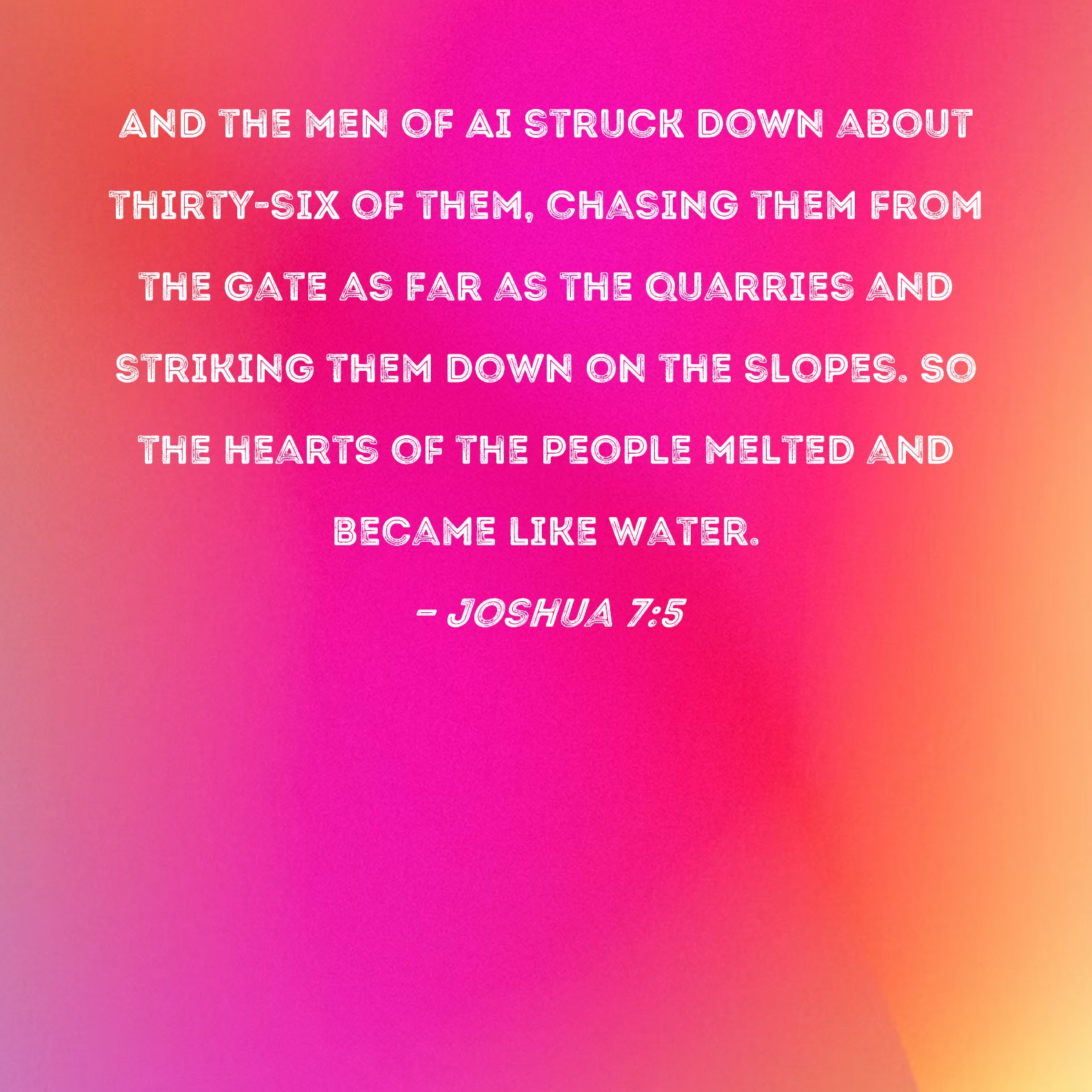 Joshua 7:5 And the men of Ai struck down about thirty-six of them, chasing them from the gate as far as the quarries and striking them down on the slopes. So the hearts of the people melted and became like water.