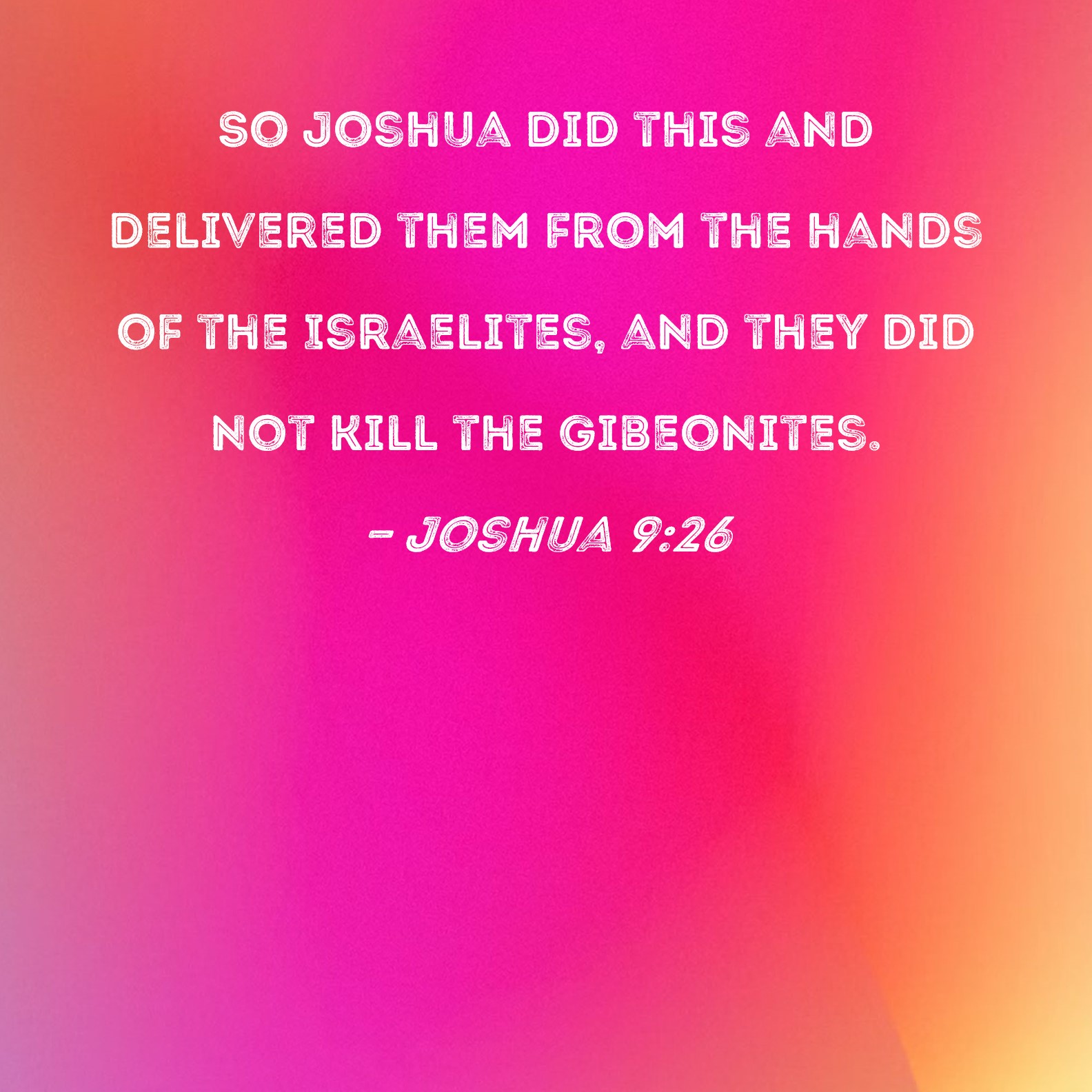 Joshua 9:26 So Joshua did this and delivered them from the hands of the Israelites, and they did not kill the Gibeonites.