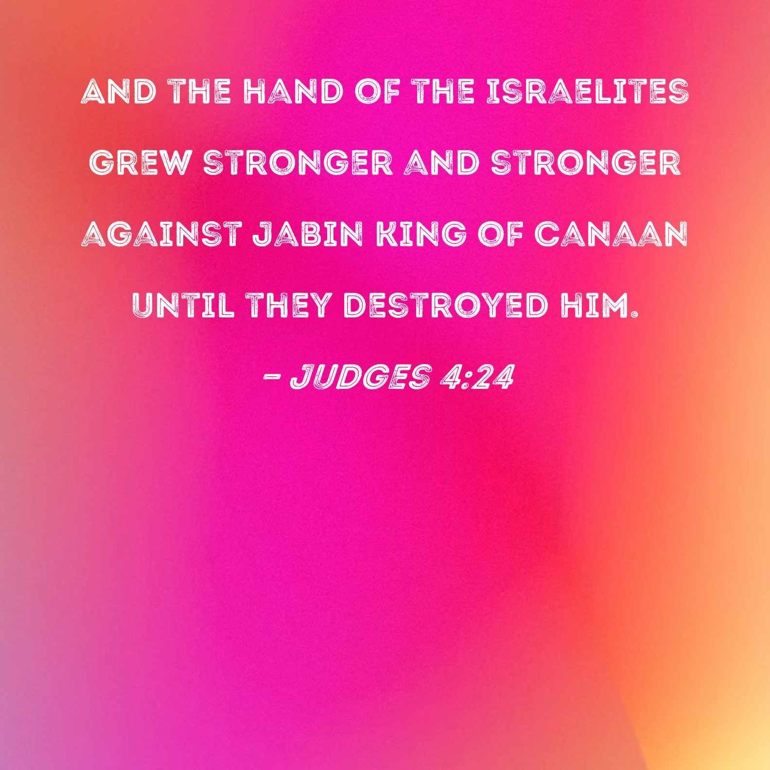 Judges 4:24 And the hand of the Israelites grew stronger and stronger against Jabin king of Canaan until they destroyed him.
