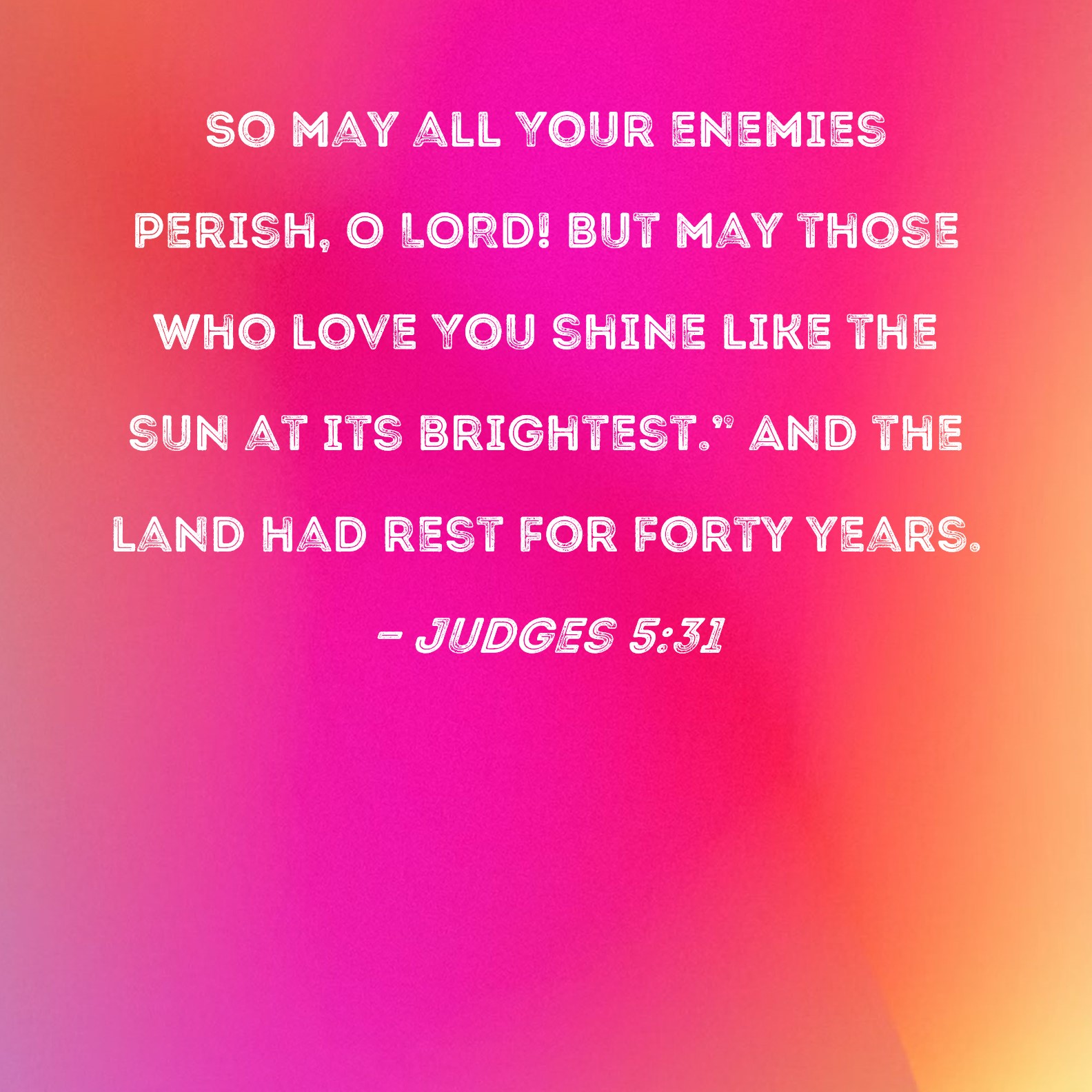 Judges 5:31 So may all Your enemies perish, O LORD! But may those who love You shine like the sun at its brightest." And the land had rest for forty years.