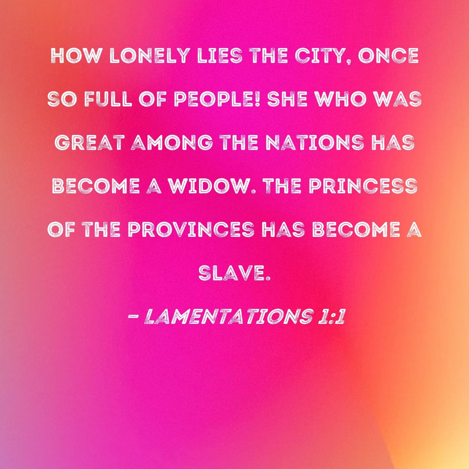 Lamentations 1:1 How lonely lies the city, once so full of people! She who was great among the nations has become a widow. The princess of the provinces has become a slave.
