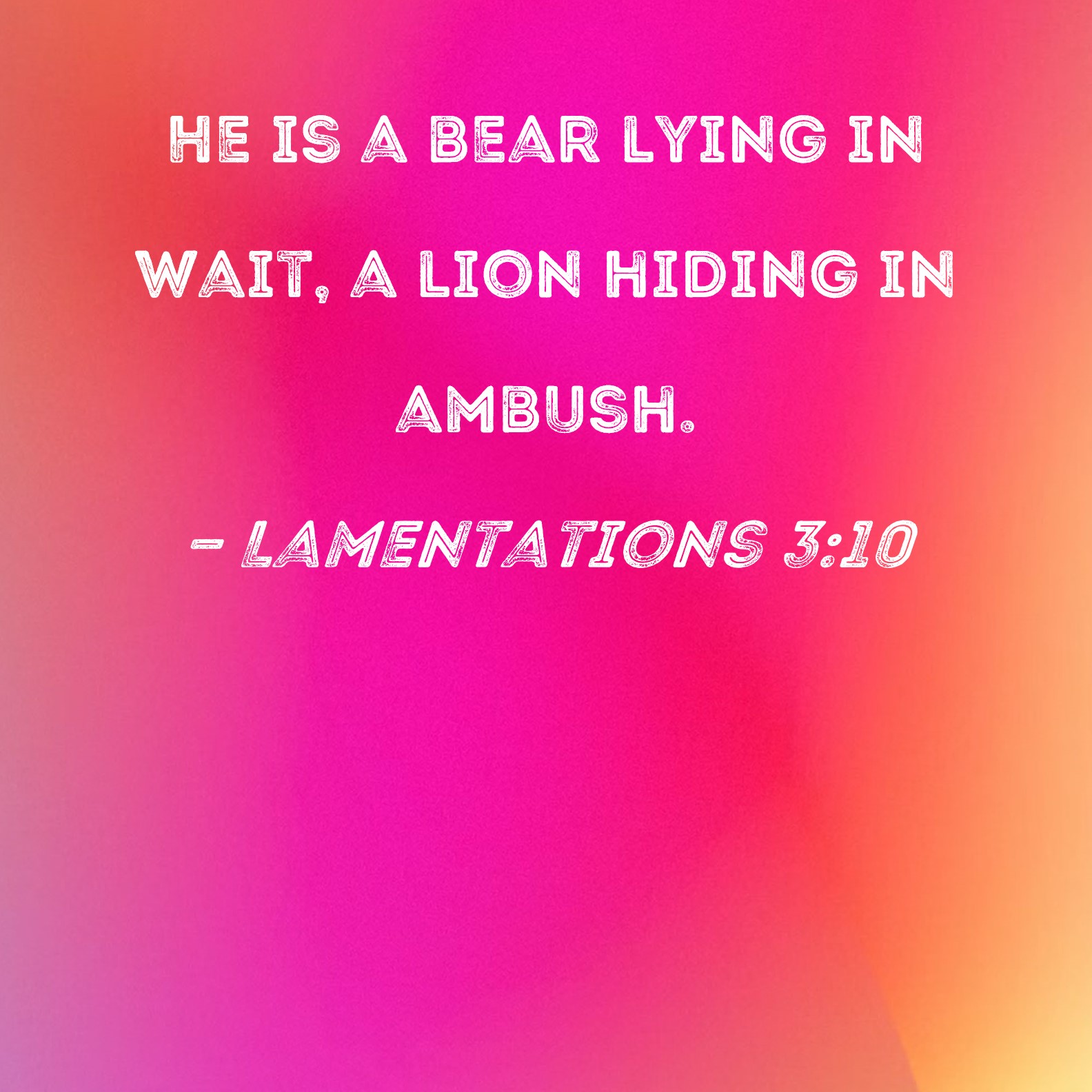 Lamentations 3:10 He is a bear lying in wait, a lion hiding in ambush.