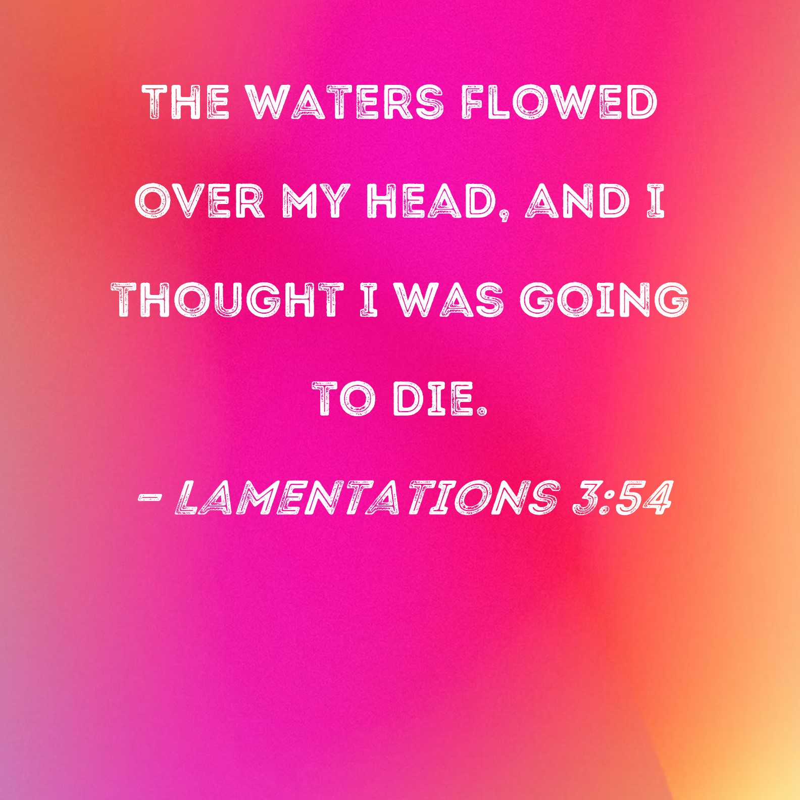 Lamentations 3:54 The waters flowed over my head, and I thought I was going to die.