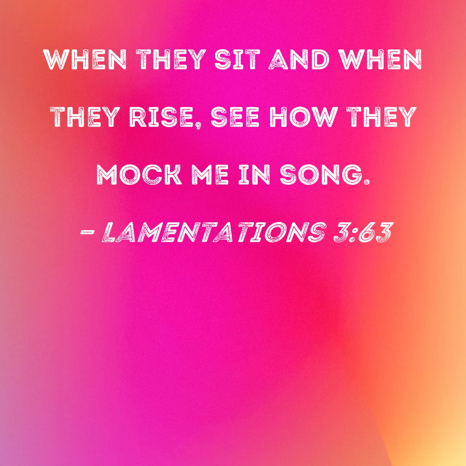 Lamentations 3:63 When they sit and when they rise, see how they mock me in song.