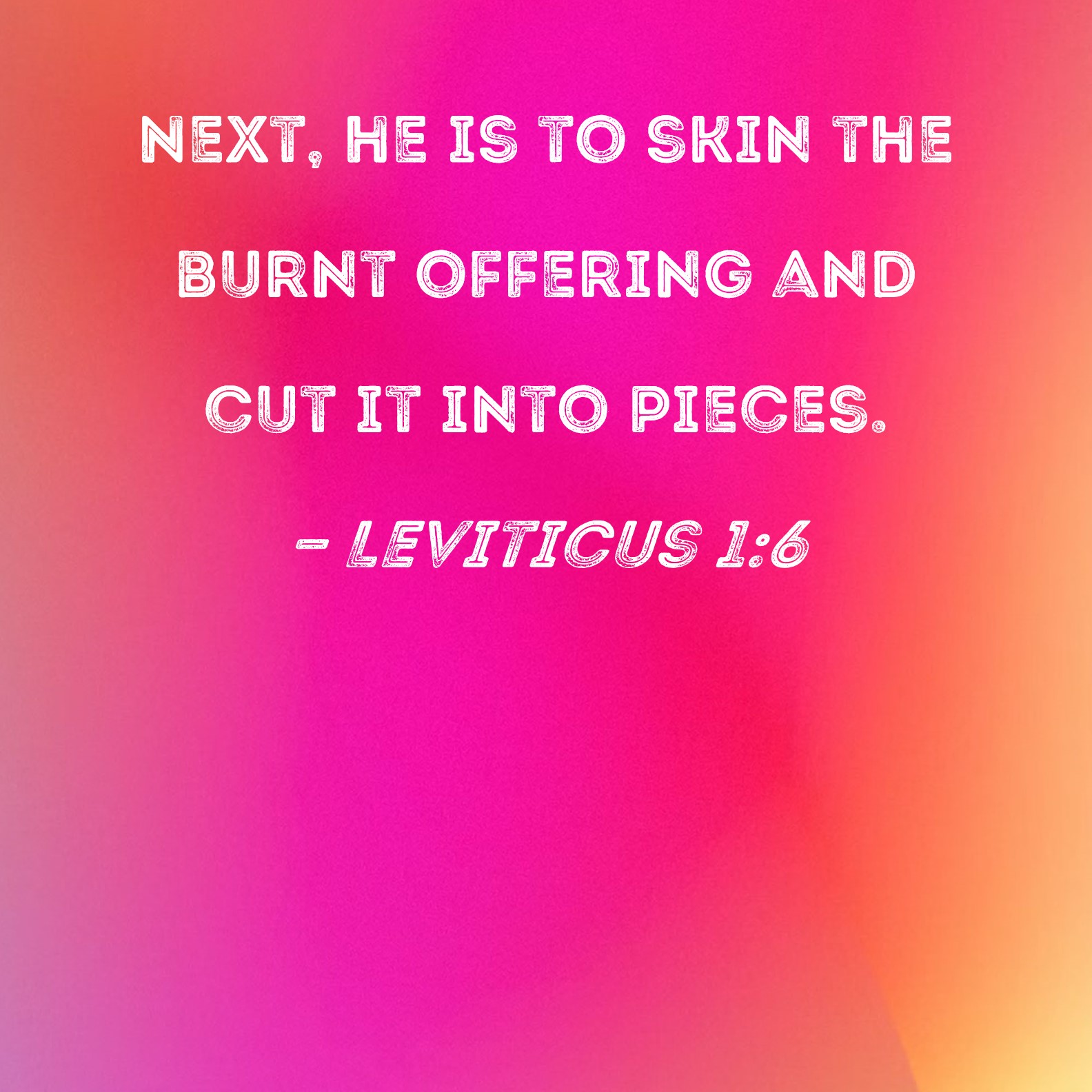 Leviticus 1:6 Next, he is to skin the burnt offering and cut it into pieces.