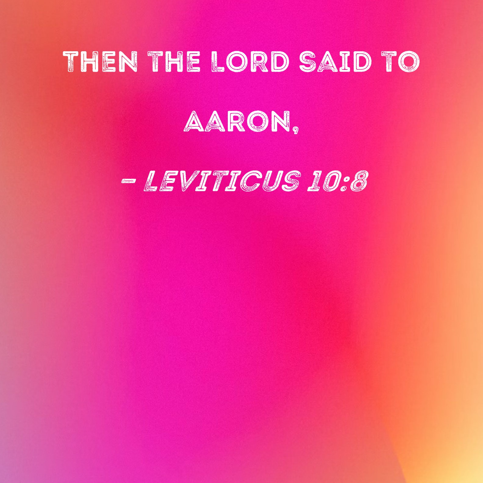 BSB: Then the LORD said to Aaron, KJV: And the LORD spake unto Aaron, saying, DRB: The Lord also said to Aaron: DBT: And Jehovah spoke to Aaron, saying, ERV: And the LORD spake unto Aaron, saying, WBT: And the LORD spoke to Aaron, saying, WEB: Then Yahweh said to Aaron, YLT: And Jehovah speaketh unto Aaron, saying,Links Leviticus 10:8 NIV • Leviticus 10:8 NLT • Leviticus 10:8 ESV • Leviticus 10:8 NASB • Leviticus 10:8 KJV • Leviticus 10:8 Interlinear • Leviticus 10:8 Commentaries • Leviticus 10:8 Parallel Texts • Leviticus 10:8 Bible Apps • Leviticus 10:8 Parallel • Bible Hub |