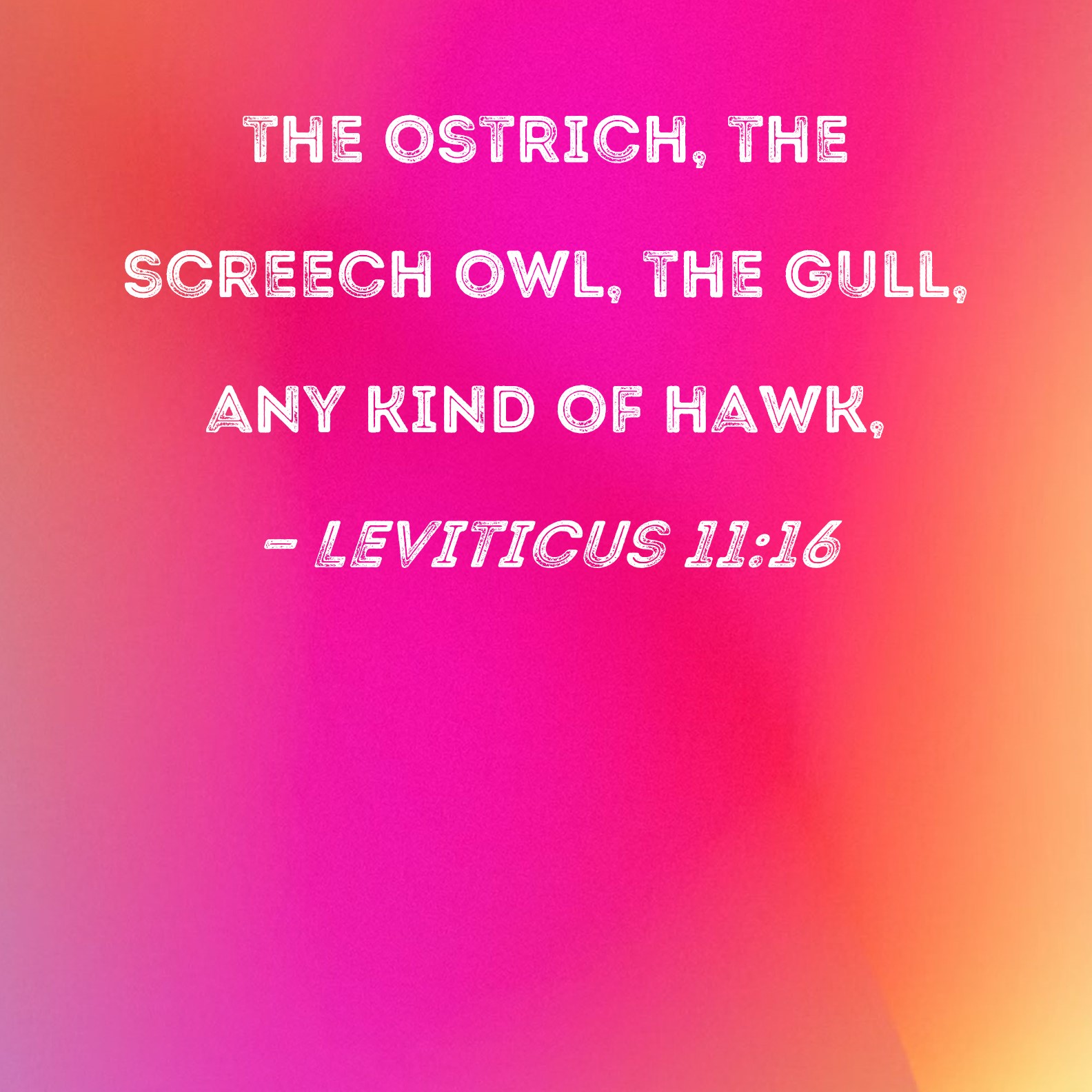 Leviticus 11:16 the ostrich, the screech owl, the gull, any kind of hawk,