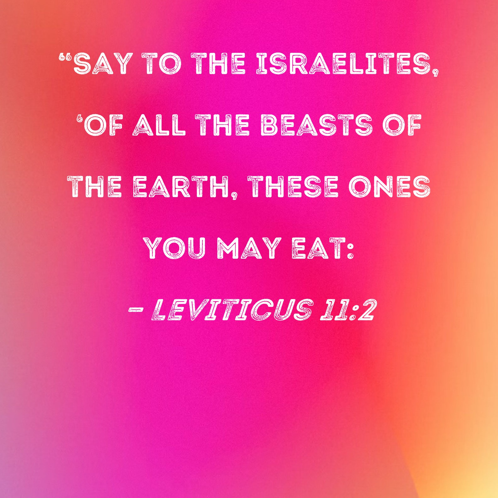 Leviticus 11:2 "Say to the Israelites, 'Of all the beasts of the earth, these ones you may eat: