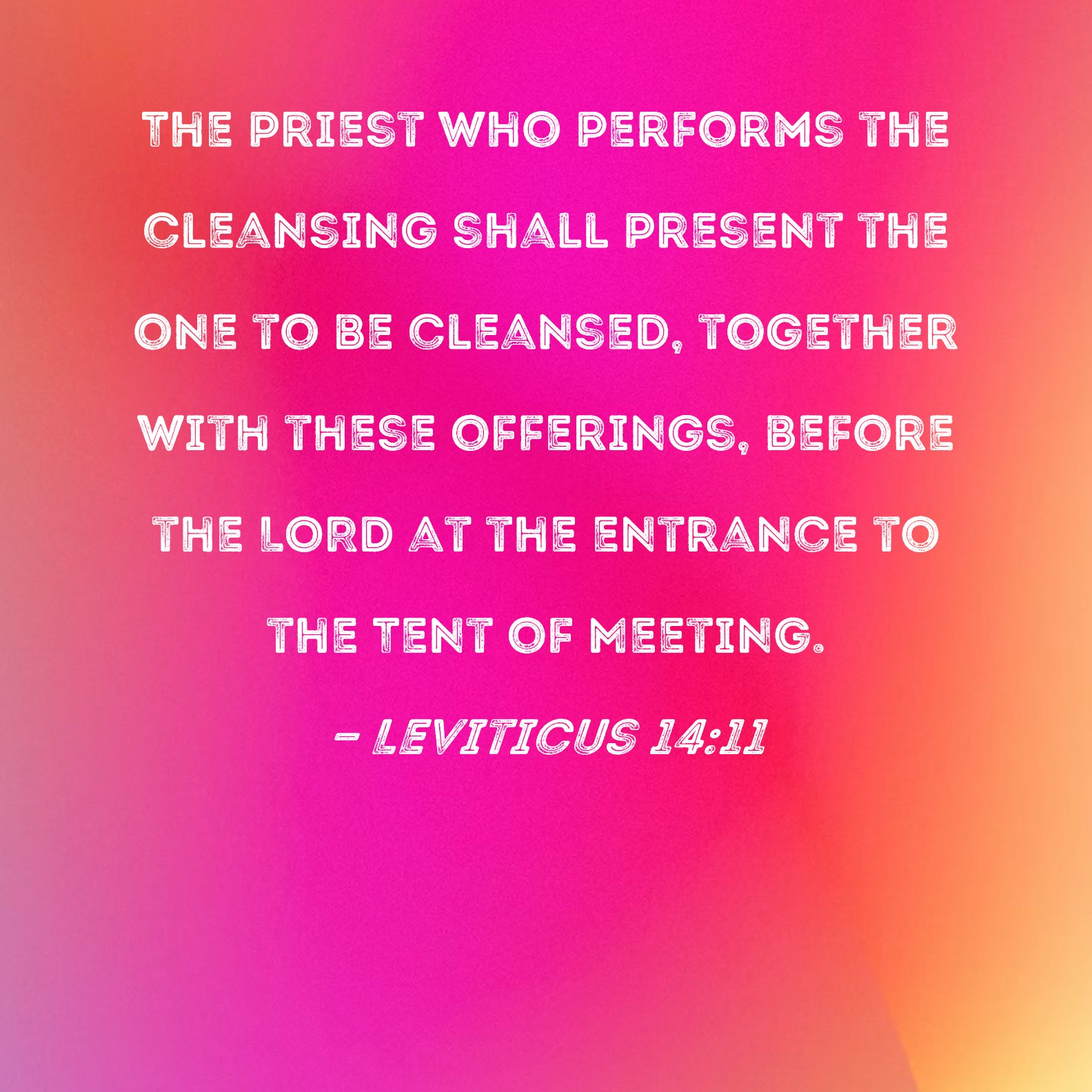 Leviticus 14:11 The priest who performs the cleansing shall present the one to be cleansed, together with these offerings, before the LORD at the entrance to the Tent of Meeting.