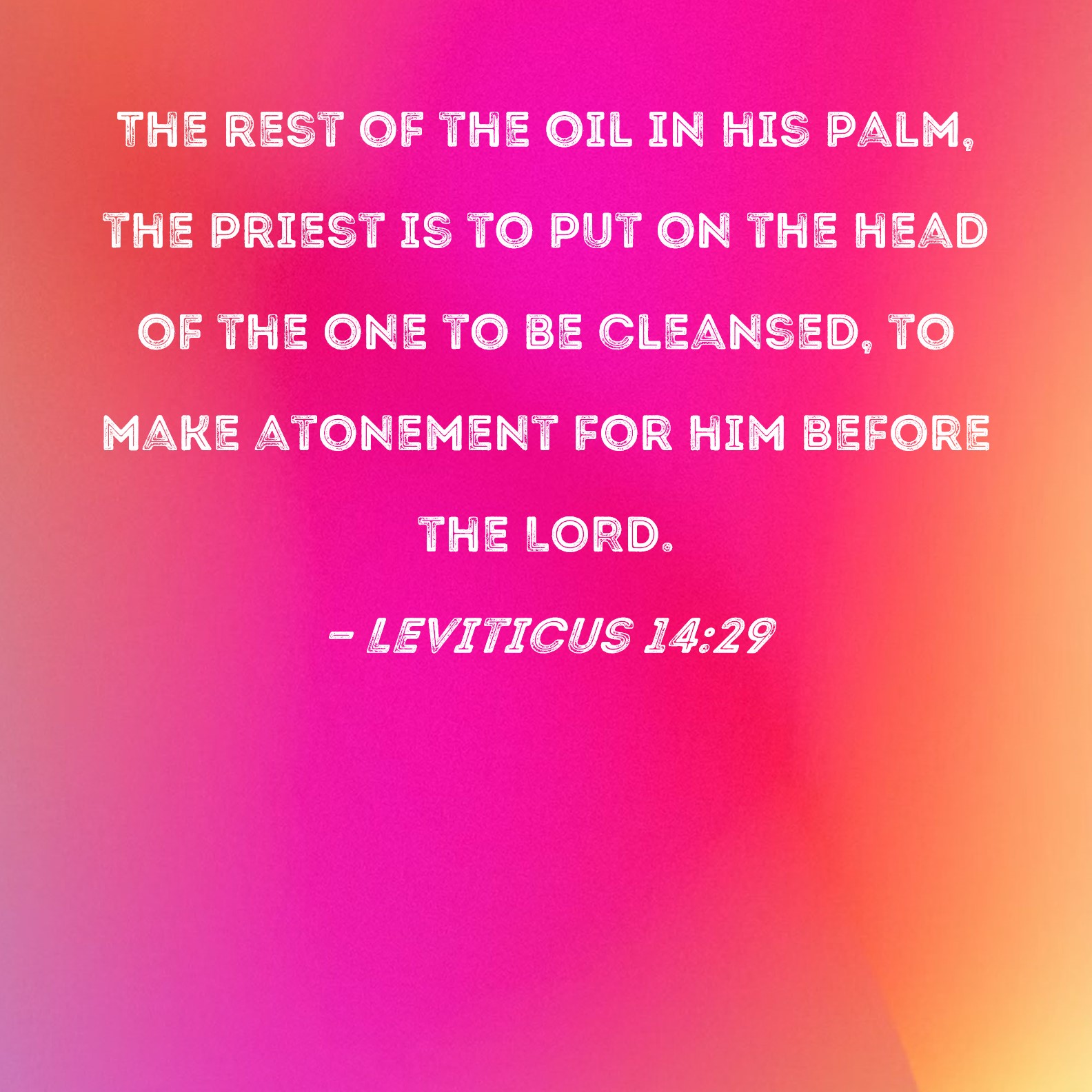Leviticus 14:29 The rest of the oil in his palm, the priest is to put on the head of the one to be cleansed, to make atonement for him before the LORD.