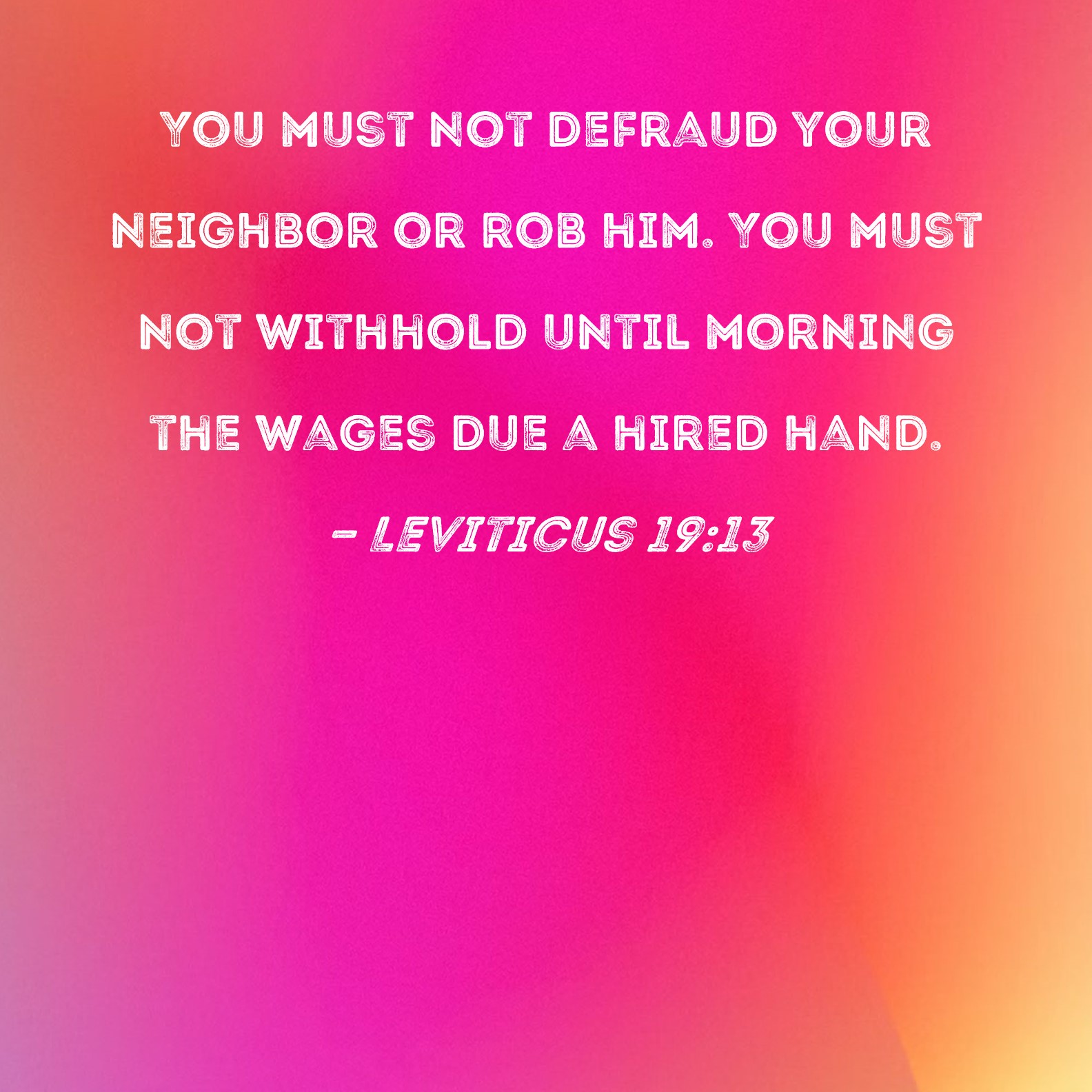 Leviticus 19:13 You must not defraud your neighbor or rob him. You must not withhold until morning the wages due a hired hand.