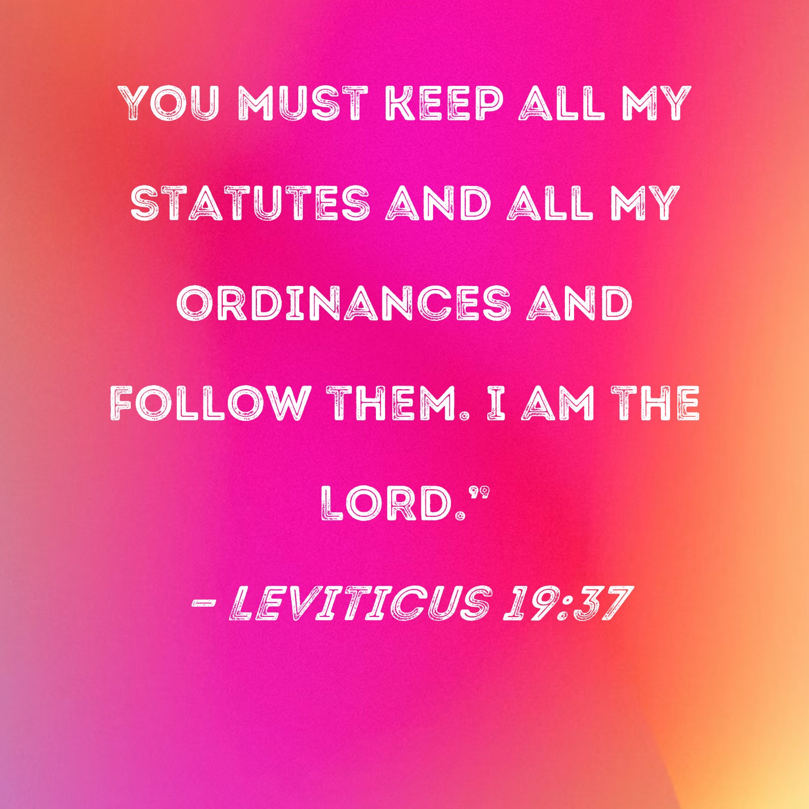 Leviticus 19:37 You must keep all My statutes and all My ordinances and follow them. I am the LORD."