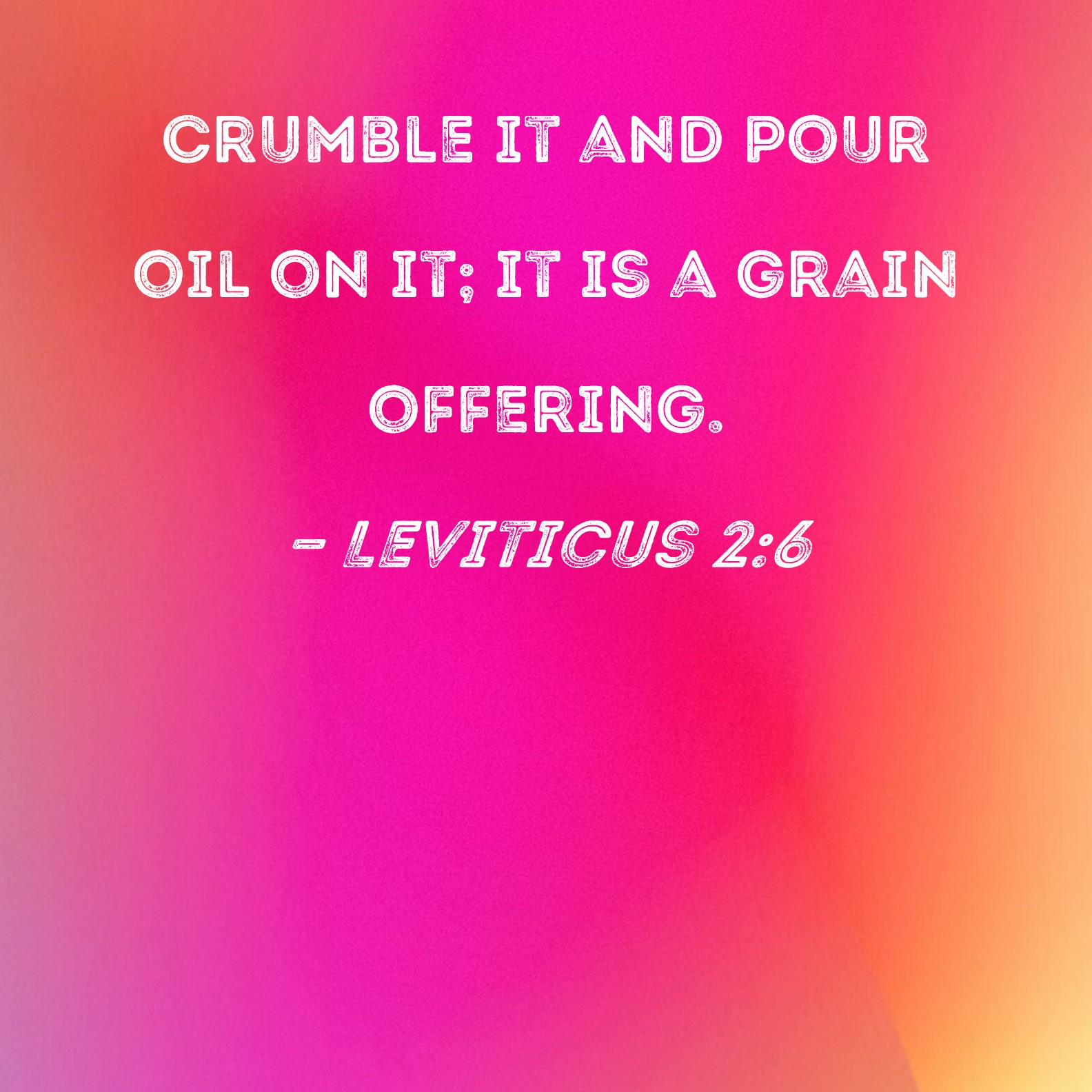 Leviticus 2:6 Crumble it and pour oil on it; it is a grain offering.