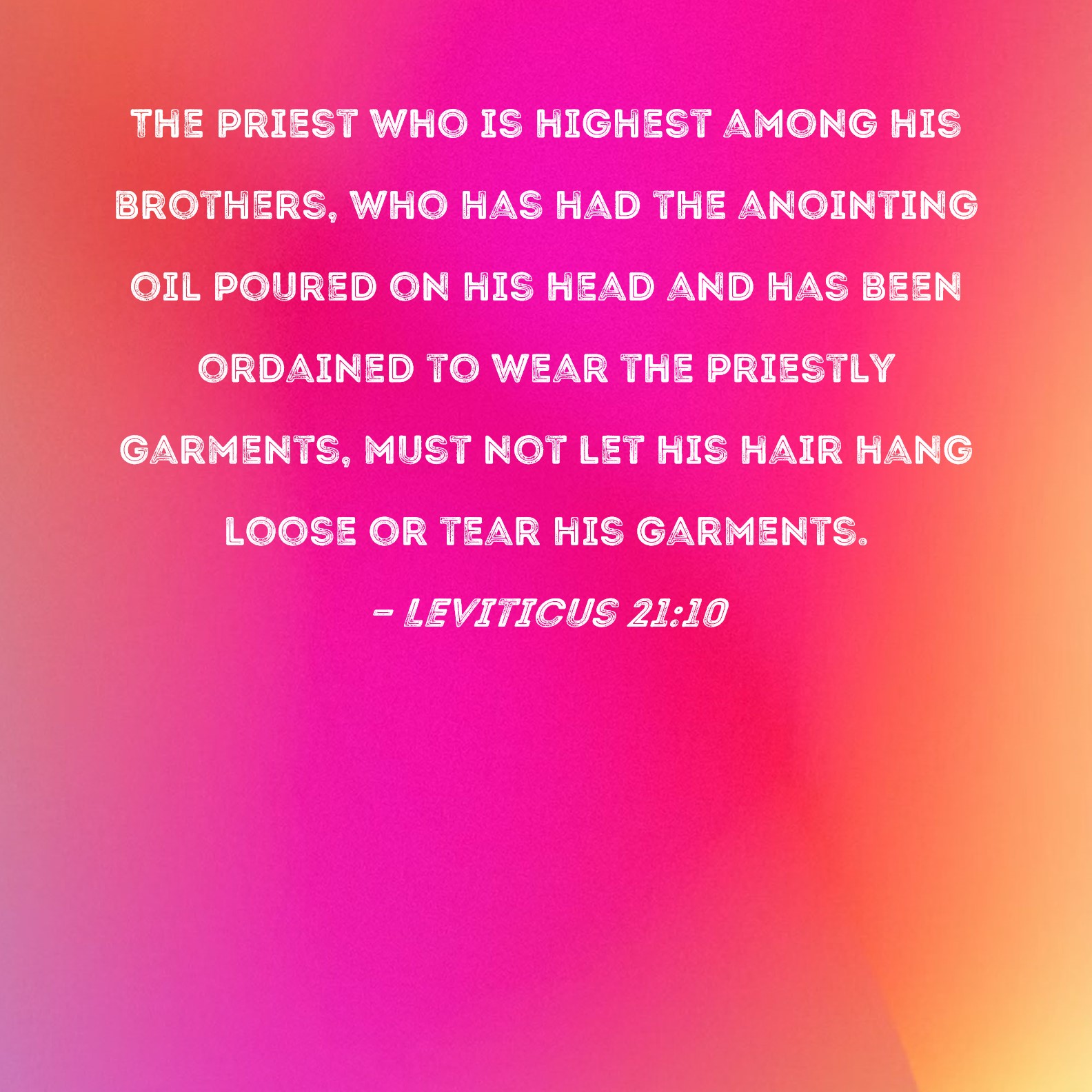 Leviticus 21:10 The priest who is highest among his brothers, who has had the anointing oil poured on his head and has been ordained to wear the priestly garments, must not let his hair hang loose or tear his garments.