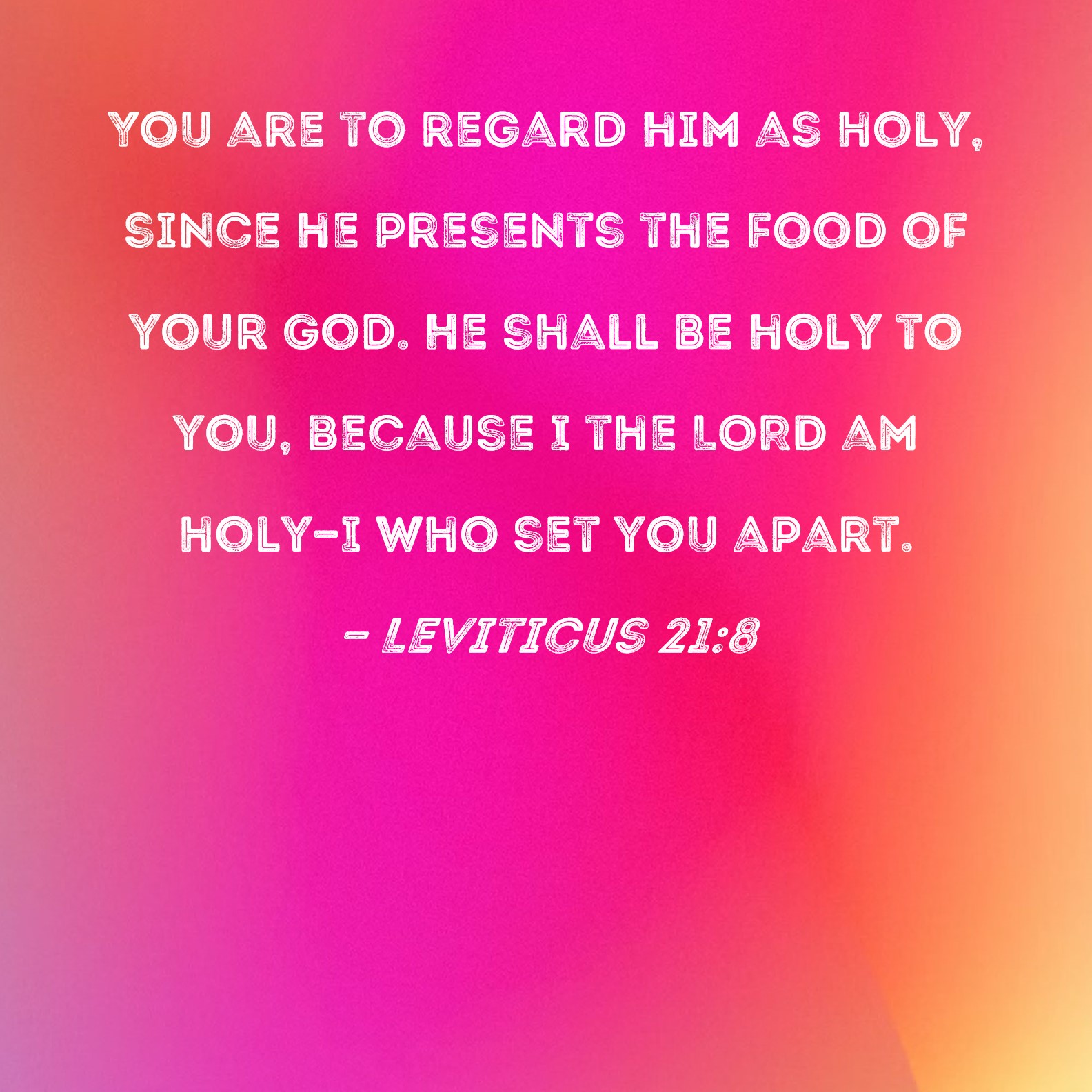 Leviticus 21:8 You are to regard him as holy, since he presents the food of your God. He shall be holy to you, because I the LORD am holy--I who set you apart.