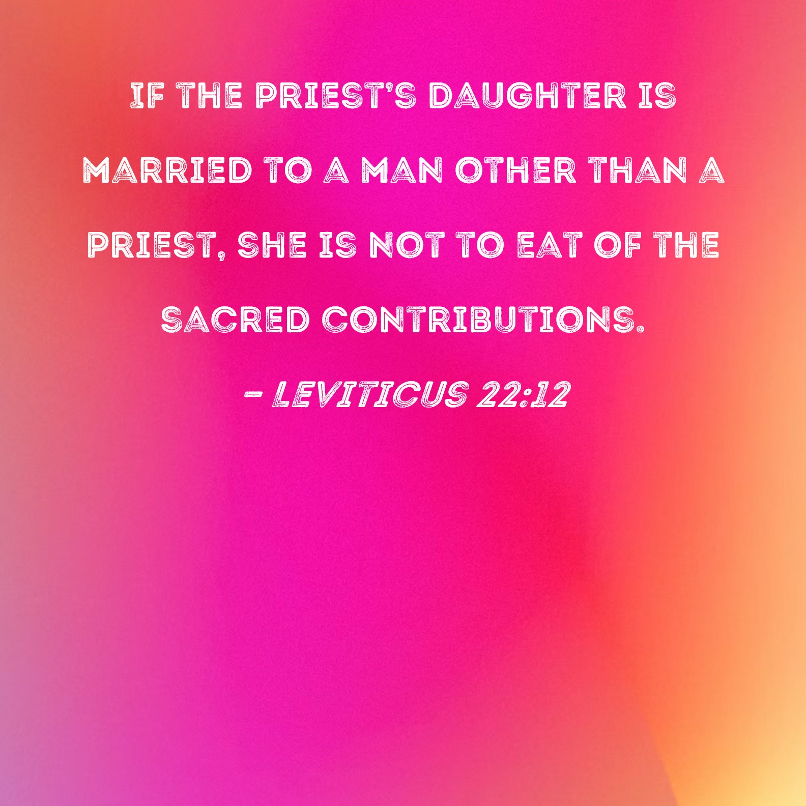 Leviticus 22:12 If the priest's daughter is married to a man other than a priest, she is not to eat of the sacred contributions.