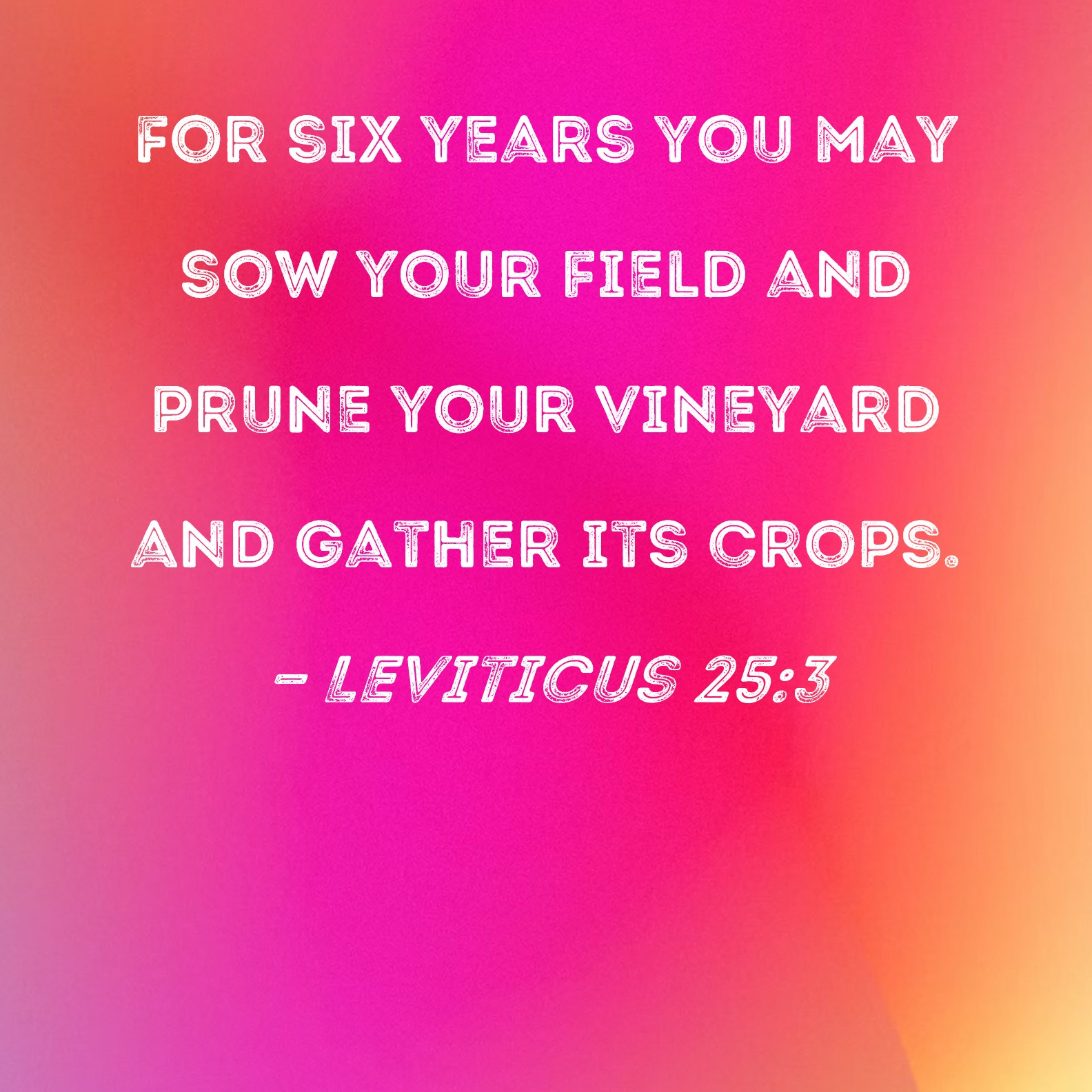 Leviticus 25:3 For six years you may sow your field and prune your vineyard and gather its crops.
