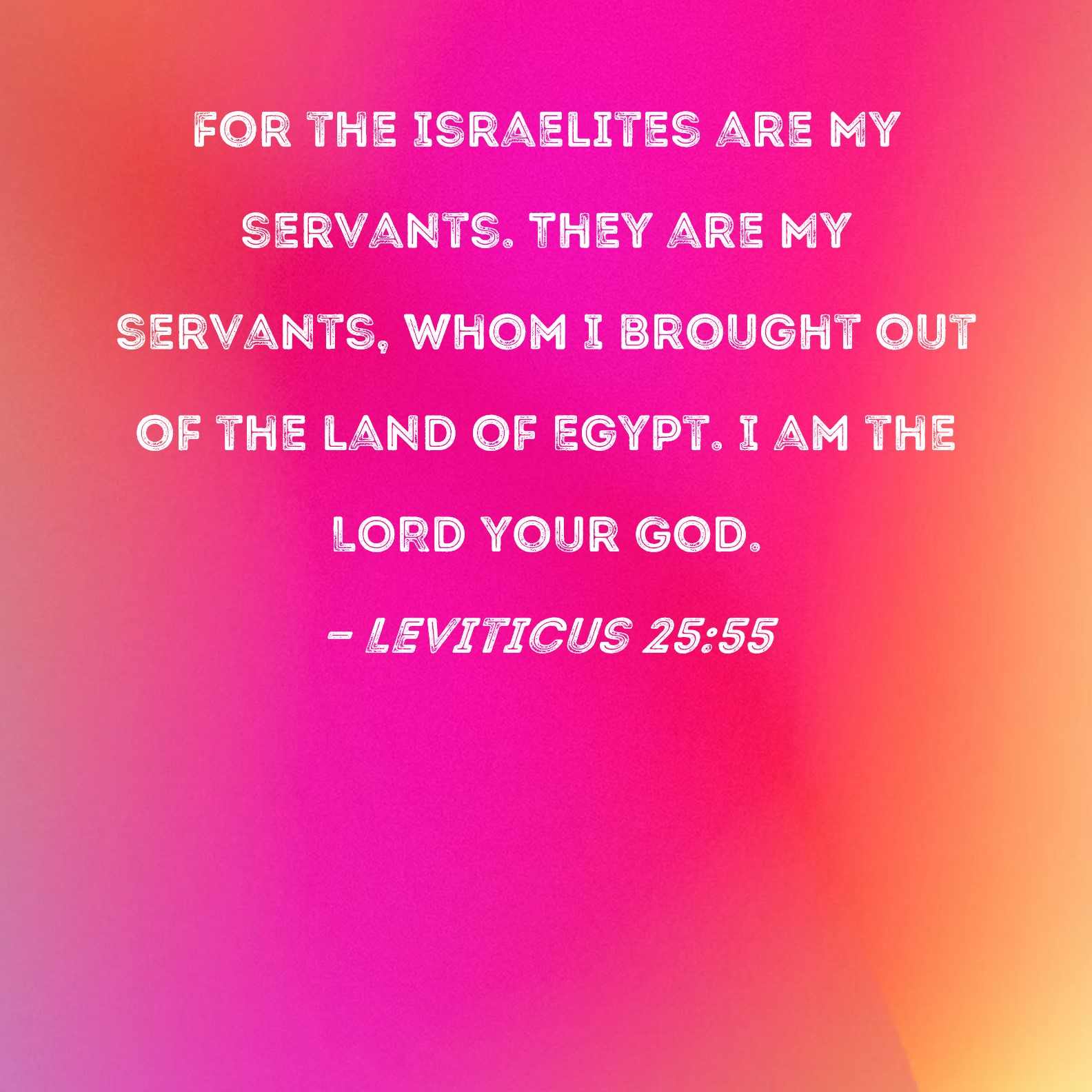 Leviticus 25:55 For the Israelites are My servants. They are My servants, whom I brought out of the land of Egypt. I am the LORD your God.