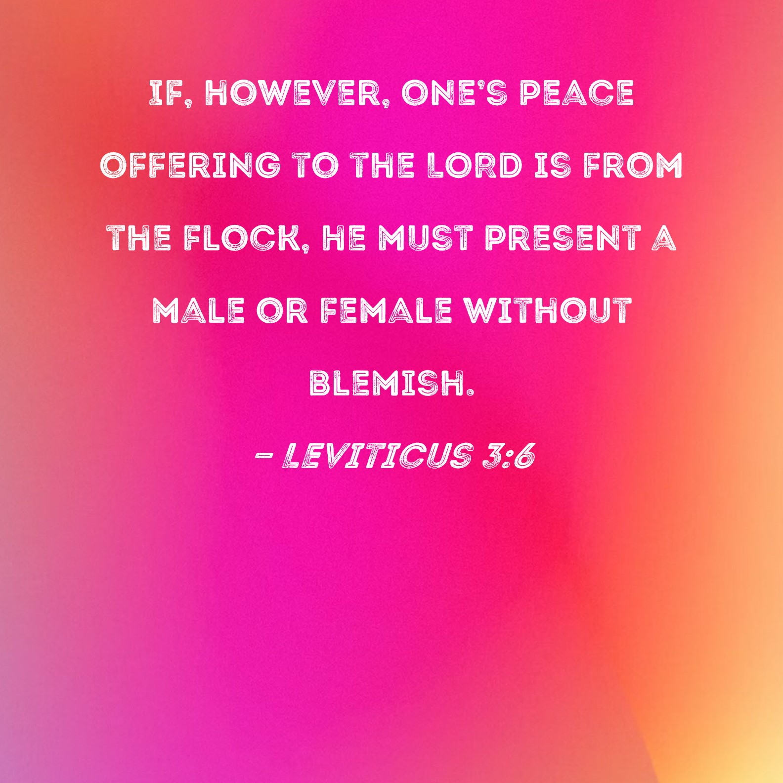 Leviticus 3:6 If, however, one's peace offering to the LORD is from the flock, he must present a male or female without blemish.