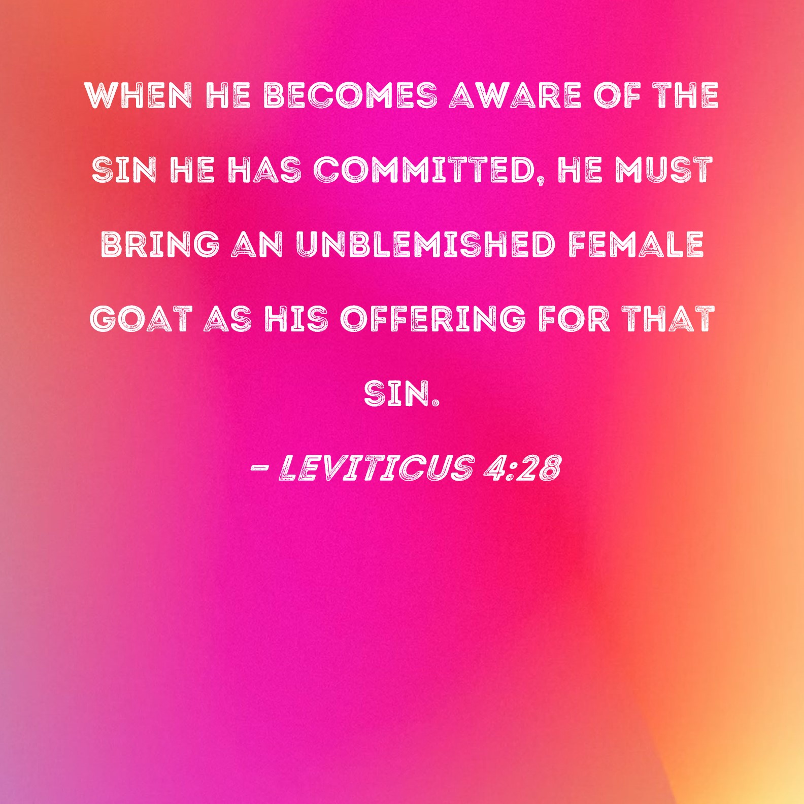 Leviticus 4:28 When he becomes aware of the sin he has committed, he must bring an unblemished female goat as his offering for that sin.