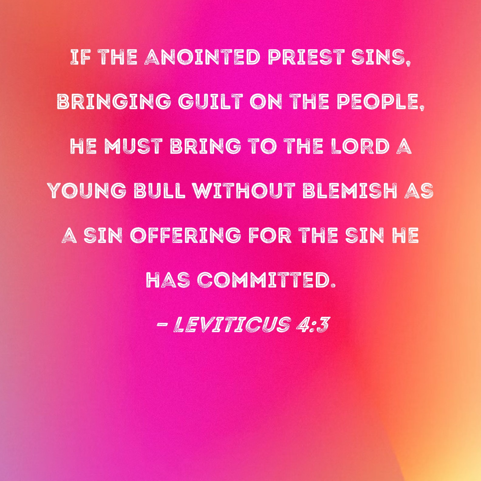 Leviticus 4:3 If the anointed priest sins, bringing guilt on the people, he must bring to the LORD a young bull without blemish as a sin offering for the sin he has committed.