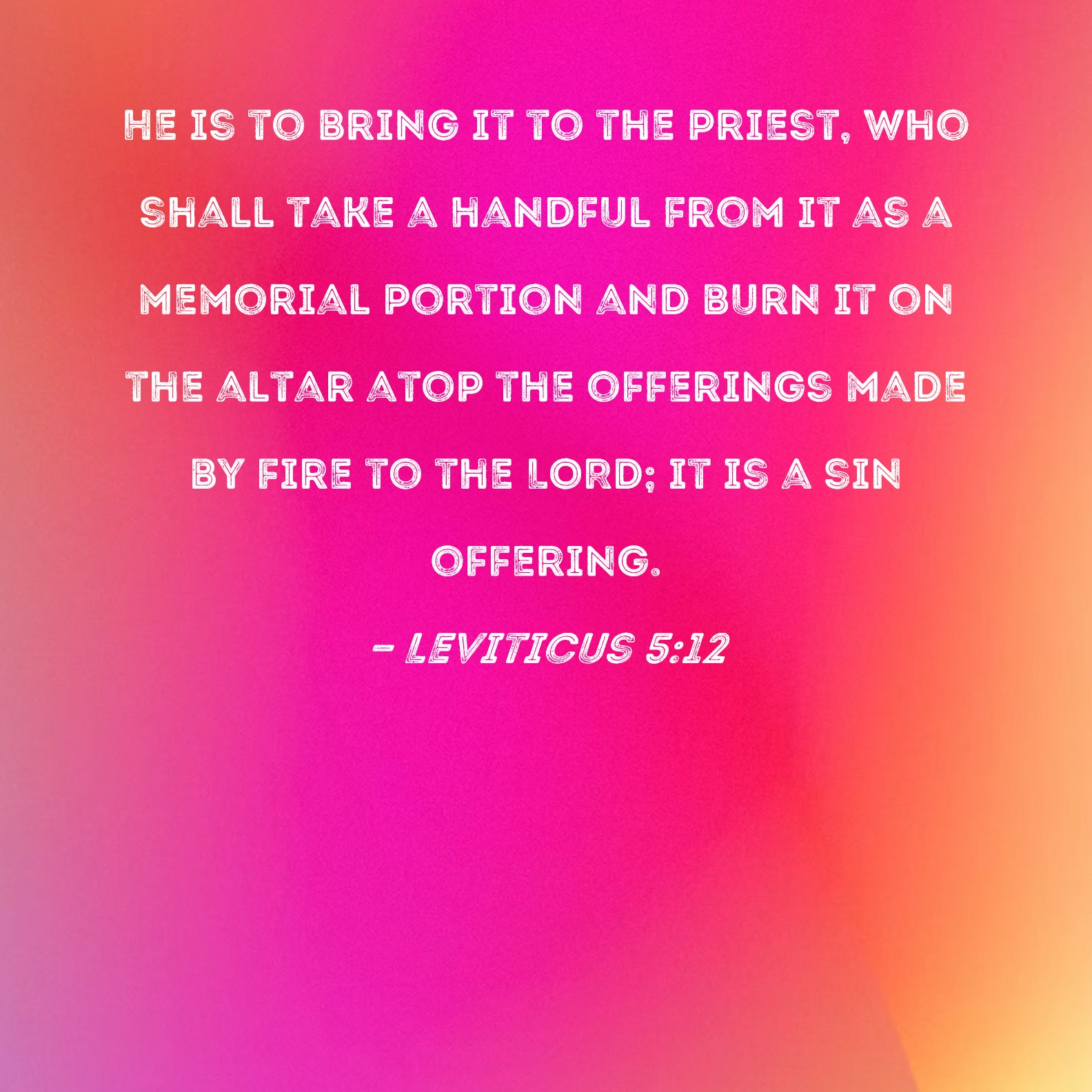 Leviticus 5:12 He is to bring it to the priest, who shall take a handful from it as a memorial portion and burn it on the altar atop the offerings made by fire to the LORD; it is a sin offering.