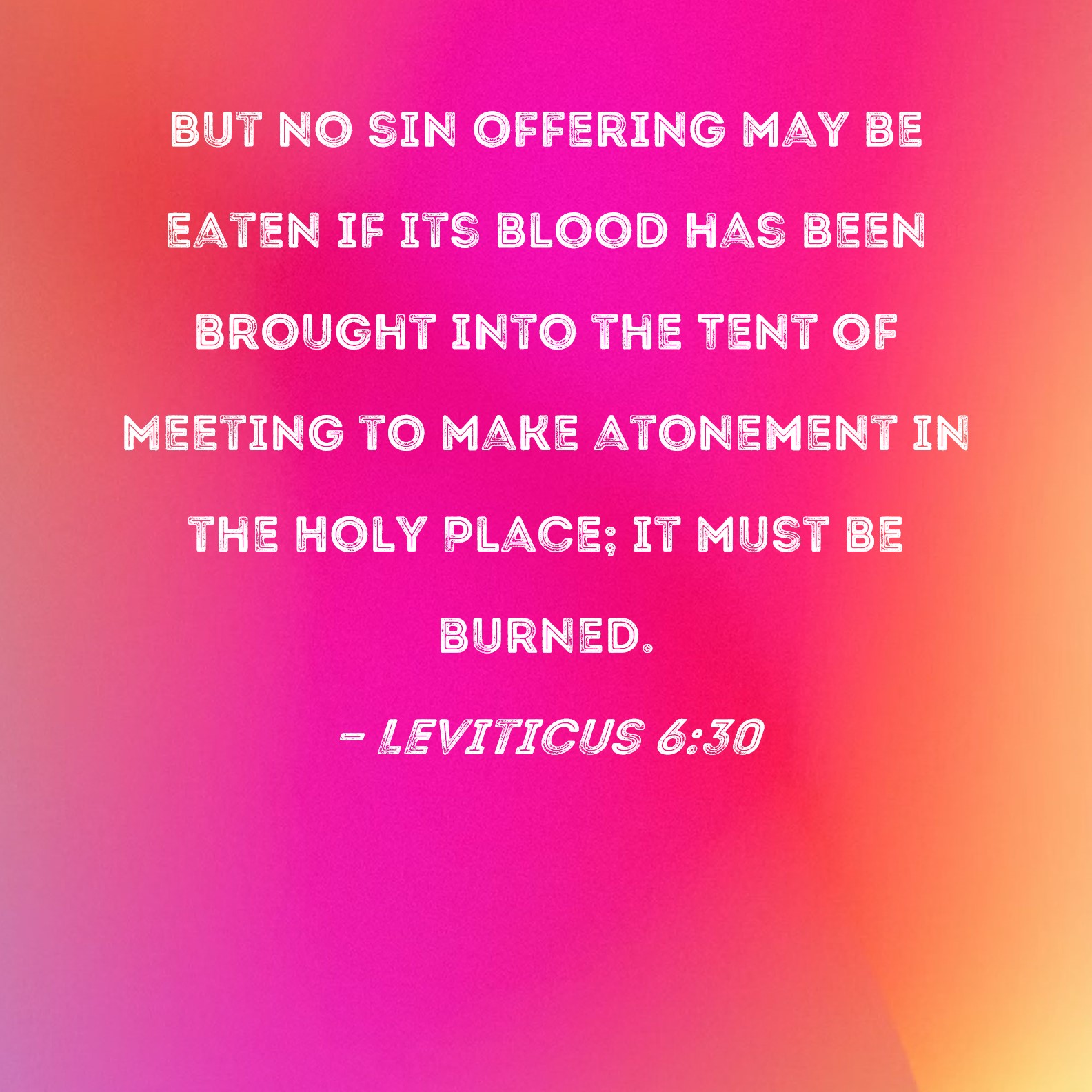 Leviticus 6:30 But no sin offering may be eaten if its blood has been brought into the Tent of Meeting to make atonement in the Holy Place; it must be burned.