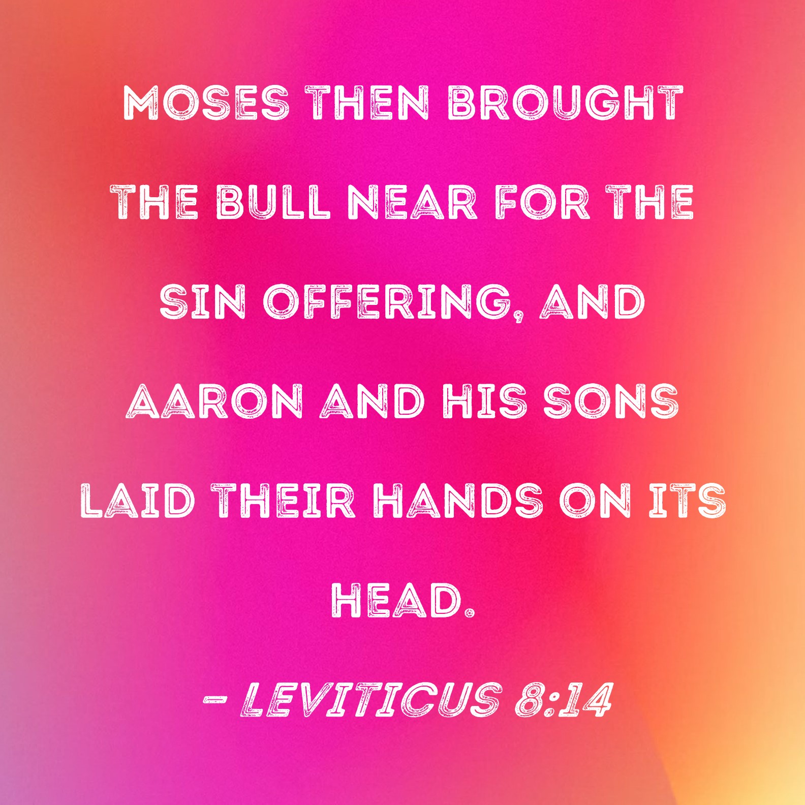 Leviticus 8:14 Moses then brought the bull near for the sin offering, and Aaron and his sons laid their hands on its head.
