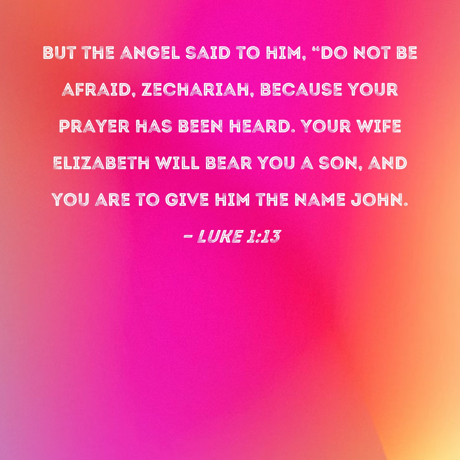 Luke 1:13 But the angel said to him, "Do not be afraid, Zechariah, because your prayer has been heard. Your wife Elizabeth will bear you a son, and you are to give him the name John.