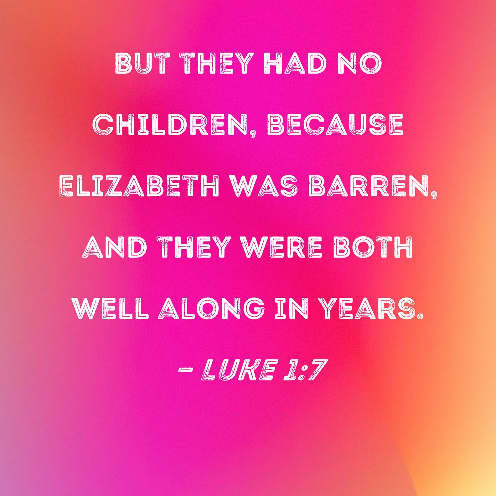 Luke 1:7 But they had no children, because Elizabeth was barren, and they were both well along in years.