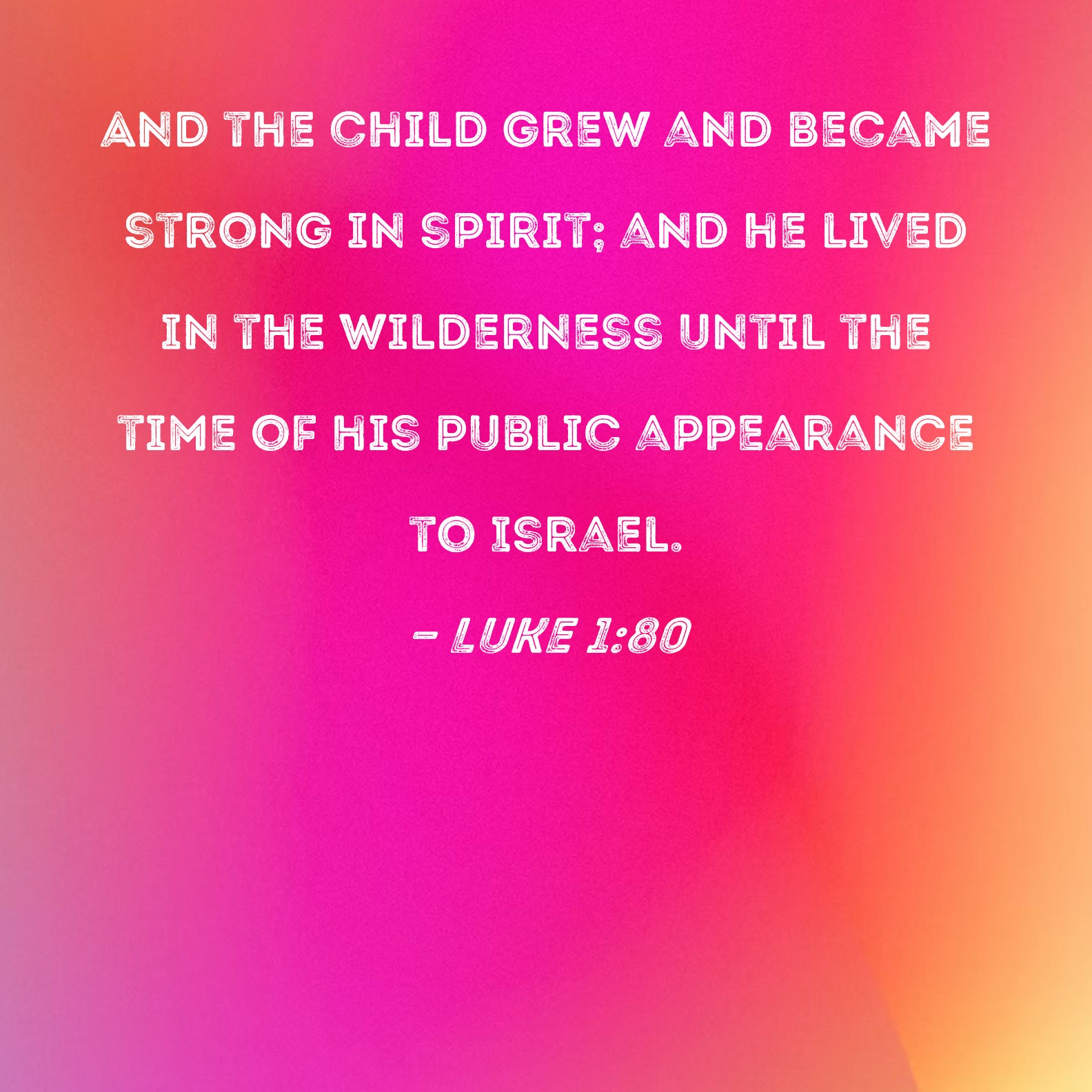 Luke 1:80 And the child grew and became strong in spirit; and he lived in the wilderness until the time of his public appearance to Israel.