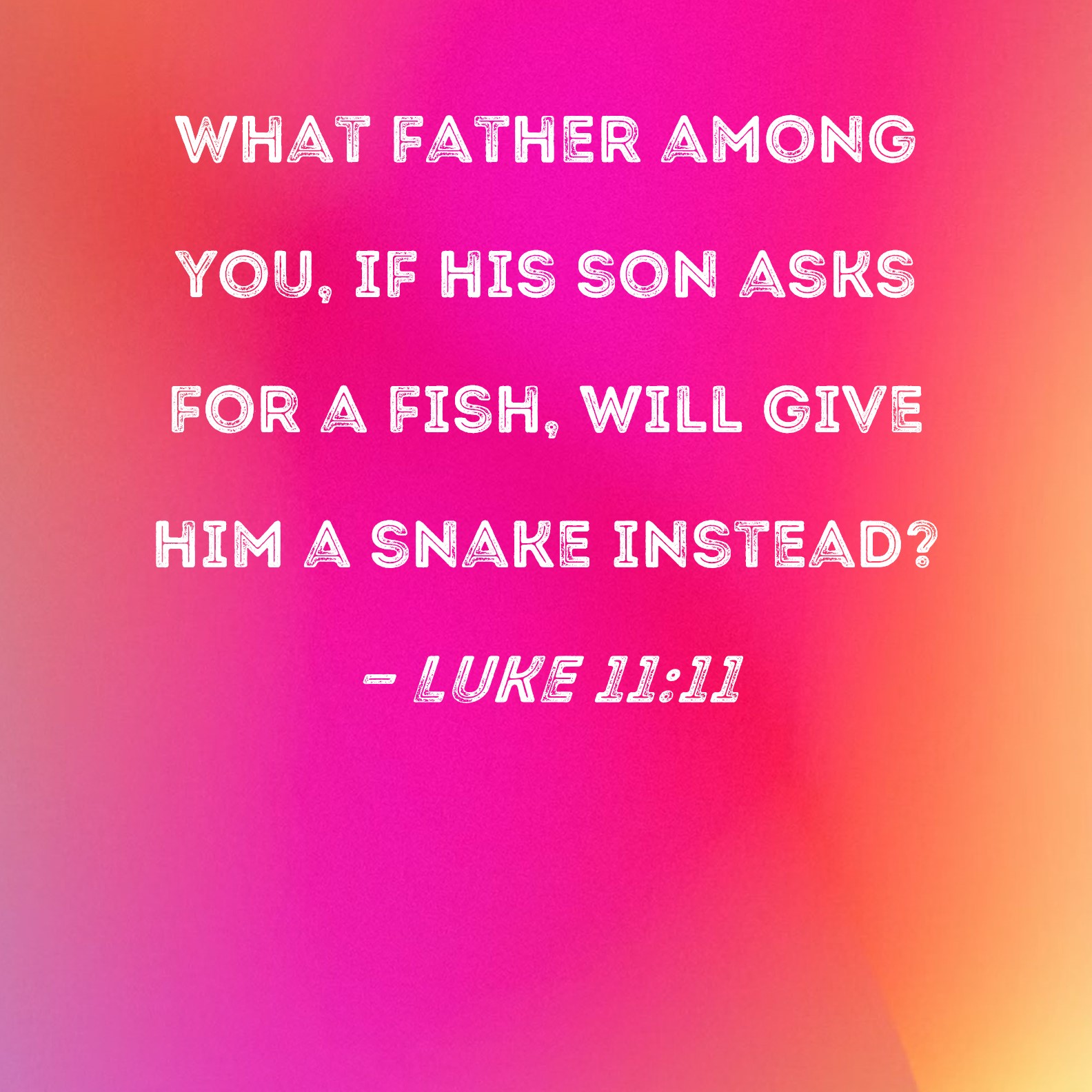 Luke 11:11 What father among you, if his son asks for a fish, will give him a snake instead?