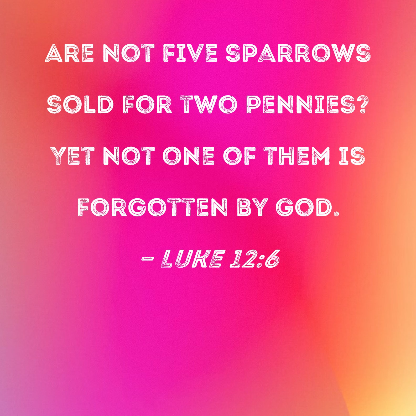 Luke 12:6 Are not five sparrows sold for two pennies? Yet not one of them is forgotten by God.