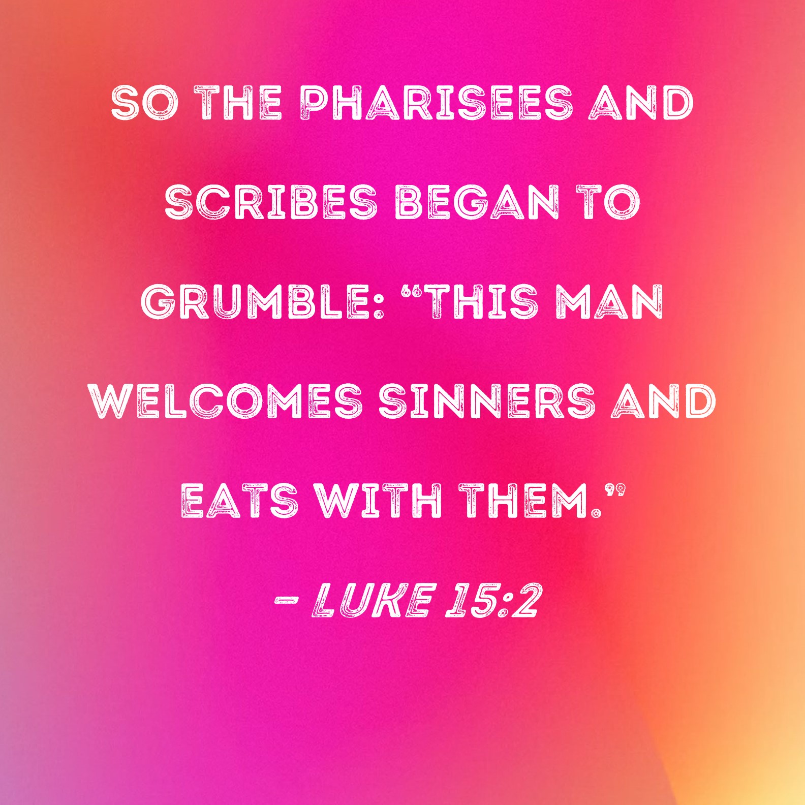 Luke 15:2 So the Pharisees and scribes began to grumble: "This man welcomes sinners and eats with them."